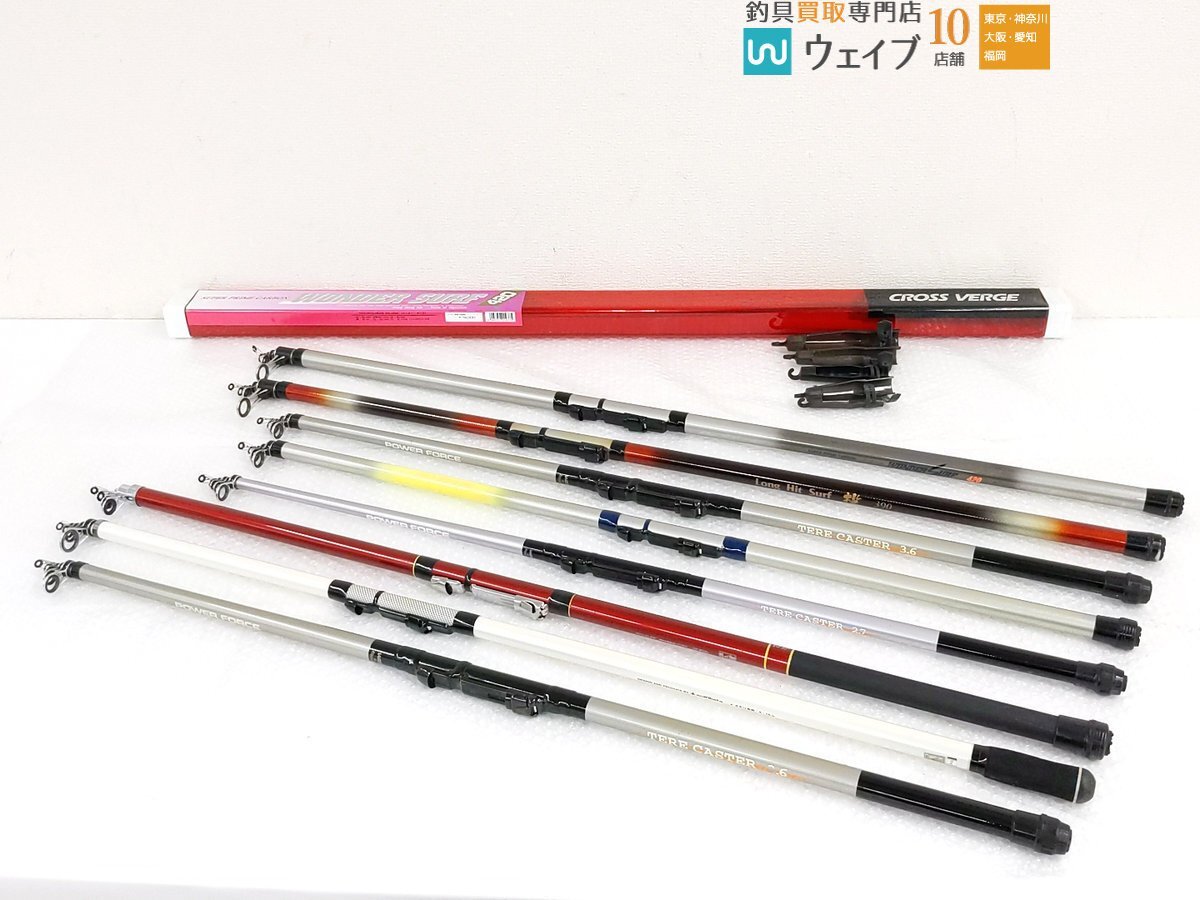 | 説明 | ・クロスバージ ワンダーサーフ 420 ・ロングヒットサーフ 投 390 ・ソルフィエスタ ボブサーフ 15-360 ・OGK レッドサーフ II 390 ・スズミ パワーフォース 3.6×2本 ・スズミ パワーフォース 2.7 ・アルファタックル ラッキー サンデー 投 360 傷や汚れや錆などありますが、ワレなどはなく、 ご使用に問題はありません。 尻栓開閉確認済み ※付属品を含め写真に写っているものが全てとなります。状態に関してはランク表または写真を参考にしてください。 |