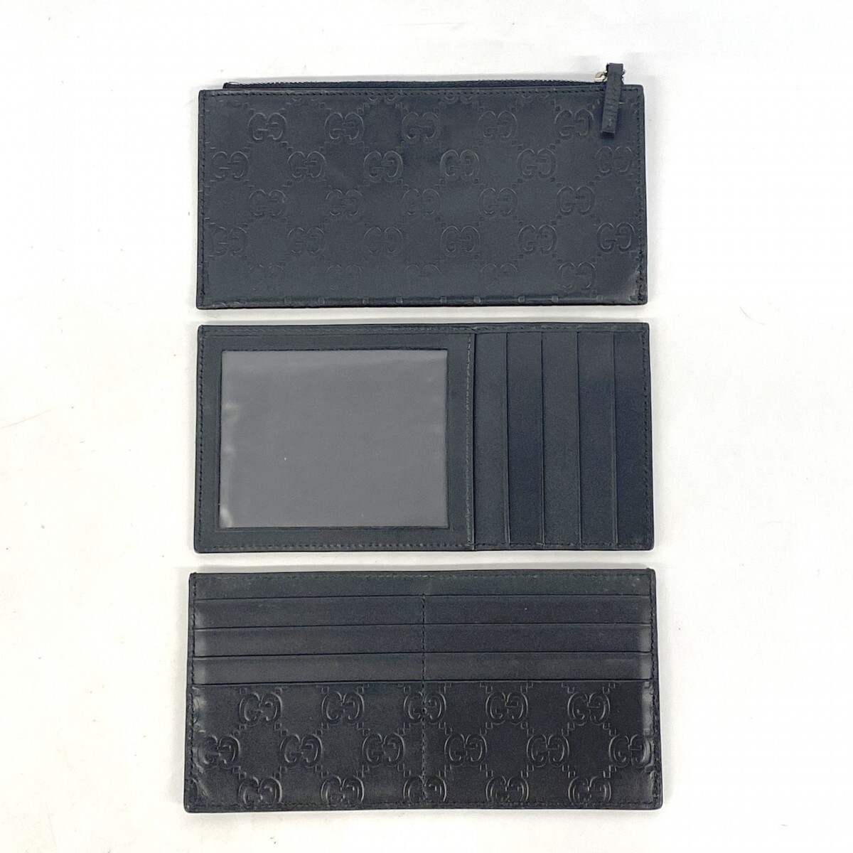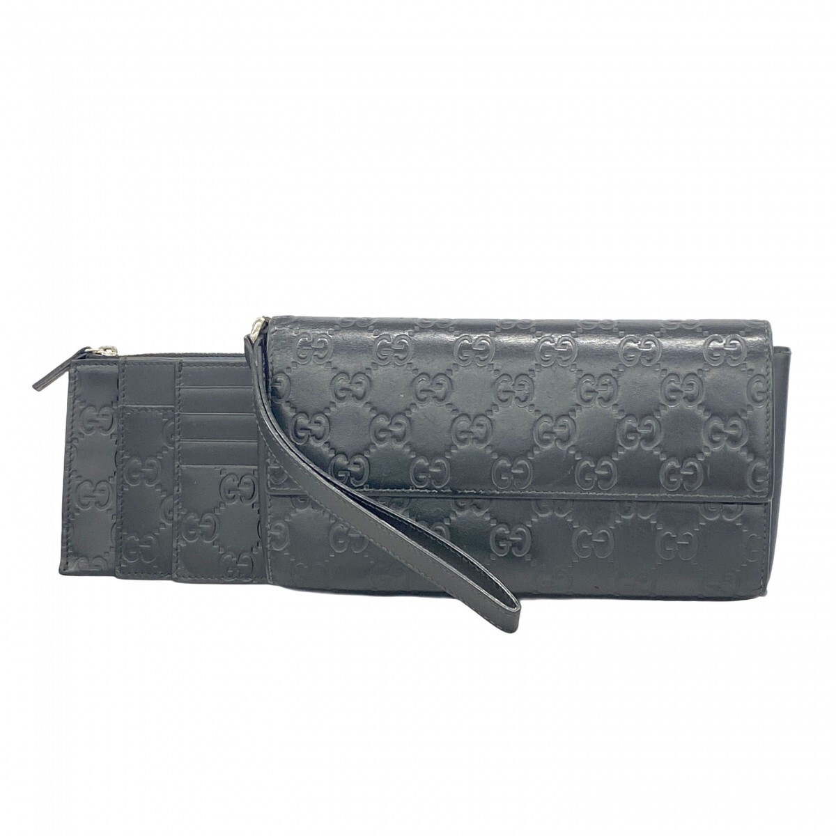 【5pb1671】グッチ 長財布 グッチシマ 309651 レザー ブラック シルバー金具【中古】メンズ