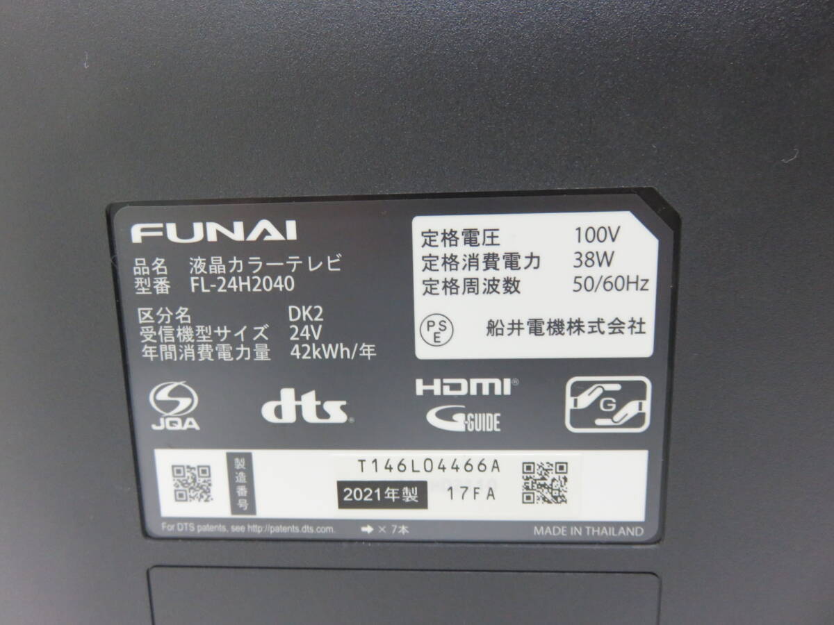 FUNAI フナイ FL-24H2040W 液晶カラーテレビ 液晶テレビ 500GB HDD かんたん録画 動作品 中古 美品 | |||