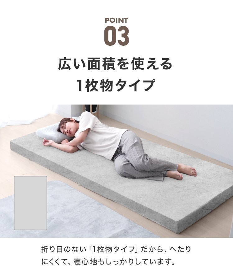 夢の寝心地を実現する低反発マットレスです♪ 厚さ8cmあるので、マットレスや敷き布団の上に敷いて使用すると、 包み込まれるような寝心地で、より快適な睡眠を取ることができます。 取り外しやすいL字ファスナー付き洗えるカバーが付属しています! 【商品仕様】 カラー:ブラウン サイズ(約):幅120cm×長さ195cm×厚み8cm(セミダブルサイズ) 梱包サイズ(約):53×34×34cm 重量(約):7.5kg 素材:低反発ウレタン(密度40kg/m3) 、パイル生地 他 【注意事項】 ・圧縮梱包されたままの状態で長期間保管した場合、マットレスが復元できなくなってしまいます。 商品到着後、すぐ圧縮から開放をして頂くようにお願いいたします。 ・マットレスは約1~2日で復元します。気温や温度により3~14日かかる場合もあります。 ・製品の臭いが気になりましたら、風通しの良いところで脱臭してください。 この臭いは素材のウレタンによるもので無害です。 臭いに敏感な方は十分ご検討の上、ご購入をお願いいたします。 ・マットの硬さは温度によって変わってきます。また、硬さの感じ方には個人差があります。 ・カバーは取り外して洗濯ができますが、マットレス本体は洗濯しないでください。 ・商品は、モニターによって色合いが異なって見える場合があります。 ・仕様・デザインは改良のため予告なく変更することがあります。 |
