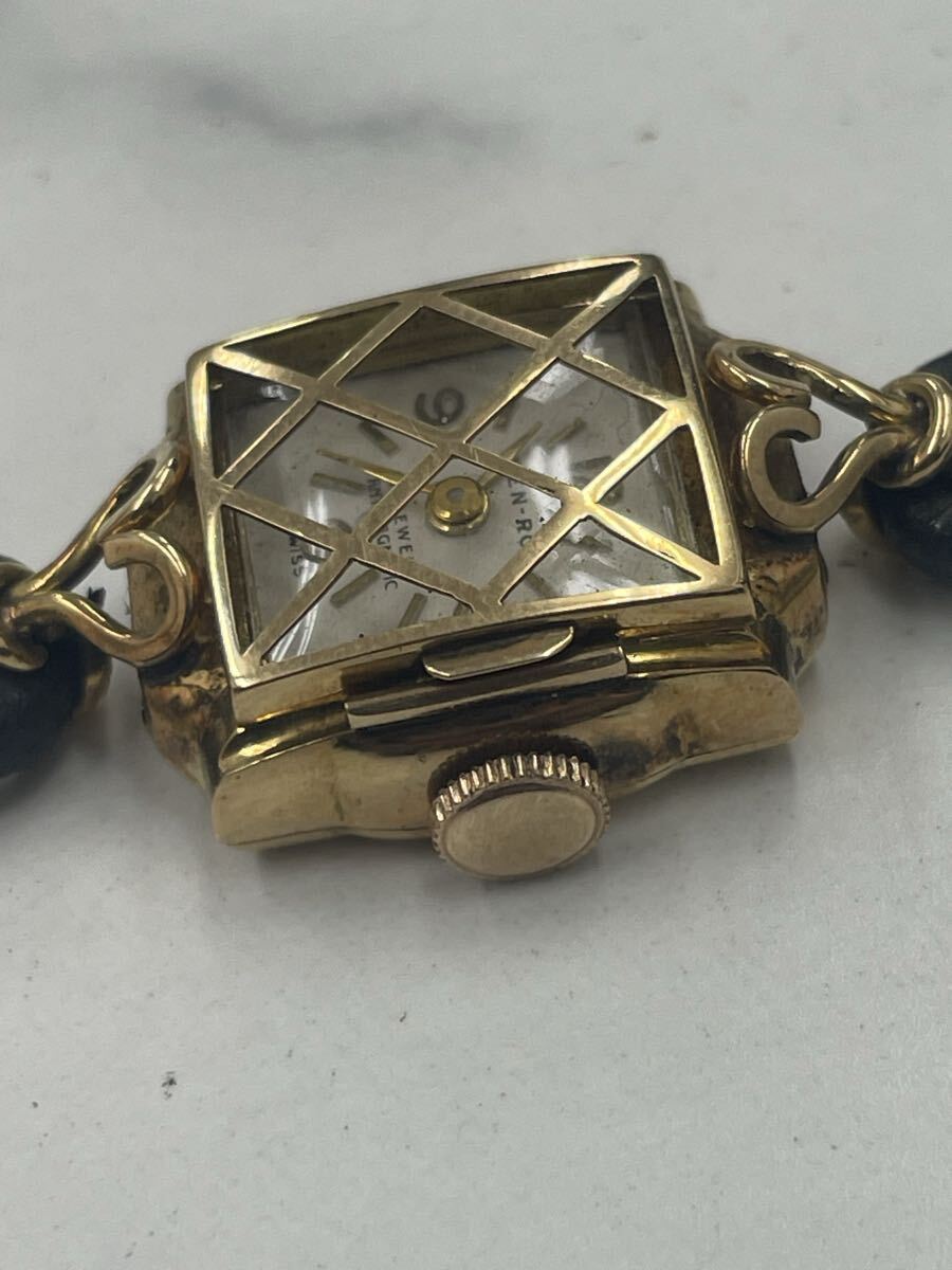 8.希少デザイン・稼動品・DEN-RO デンロ K18/750 18K 刻印 金無垢 手巻き 腕時計 レディース 地金 資産 金価格高騰中//KU340