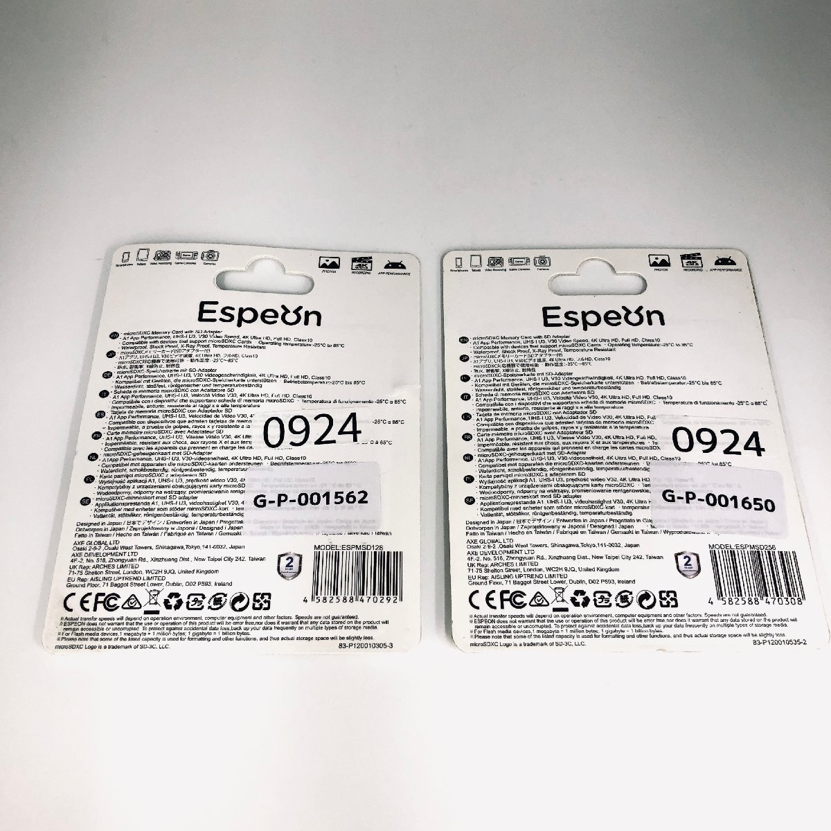 2344〇/【未開封品・2個セット】Espeon(エスピオン) MicroSDXCカード UHS-I U3 A1 V30 128GB/256GB SDアダプター付【0924】