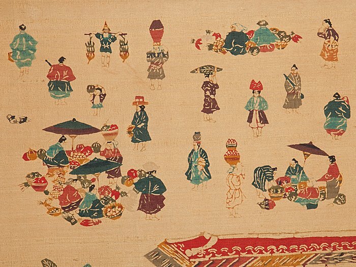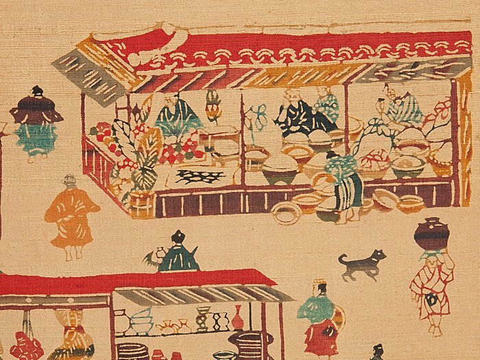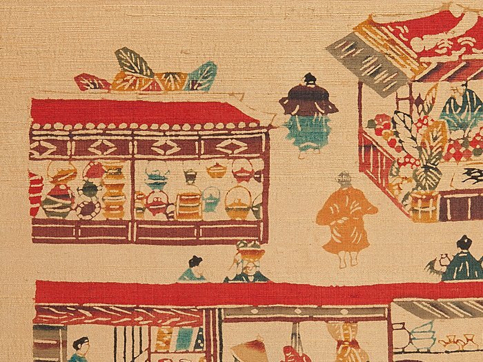 【1on1】真作 人間国宝 芹沢銈介 『沖縄風物』 型絵染 伊可田屋 田畑浩平鑑題シール 額装 / 型絵染創始者 文化功労者