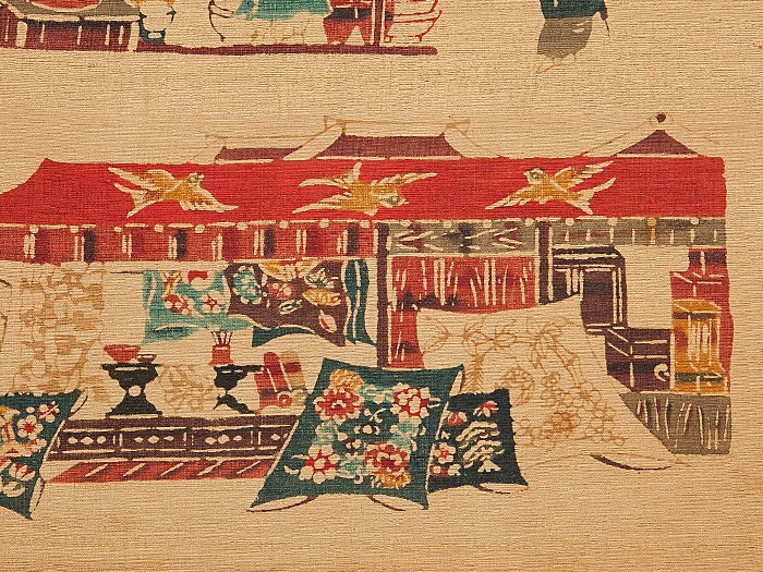 品名 真作 人間国宝 芹沢銈介 『沖縄風物』 型絵染 伊可田屋 田畑浩平鑑題シール 額装