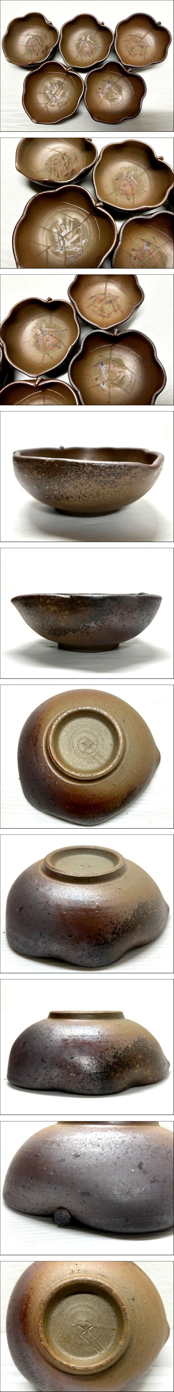 | 美品 桂花園 備前焼 松本頼明 (作) 木の葉皿 5客揃 銘々皿 深皿/小鉢/菓子鉢/和食器/伝統工芸品 | |
