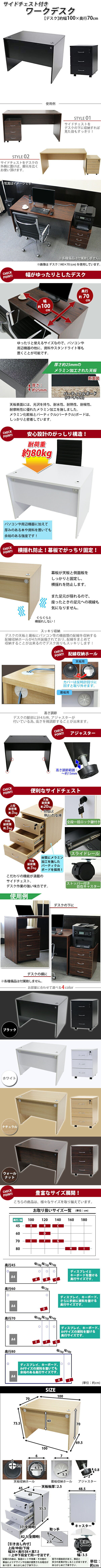 | 商品サイズ | ■本体寸法・・・デスク:約W100×D70×H73.5(cm) サイドチェスト:W約40×D約48.5×H約55.5(cm) ■梱包寸法(2個口)・・・デスク:約W110×D80×H12(cm) サイドチェスト:W約47×D約56×H約52(cm) |