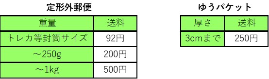 ※送料は全て税込価格です。※上記にない発送方法はお取り扱い致しませんのでご了承ください。 ※ゆうパックの送料は、日本郵便の定価より100円~300円お値引きさせて頂いております。 | |||||