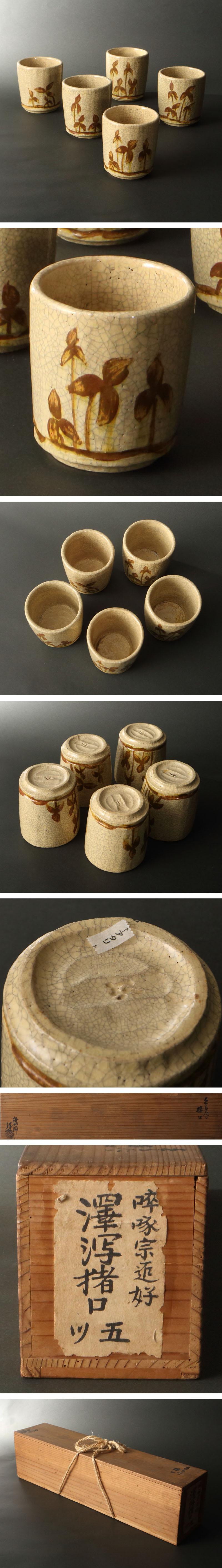 久楽弥介 オモダカ絵白楽猪口 5客 共箱
