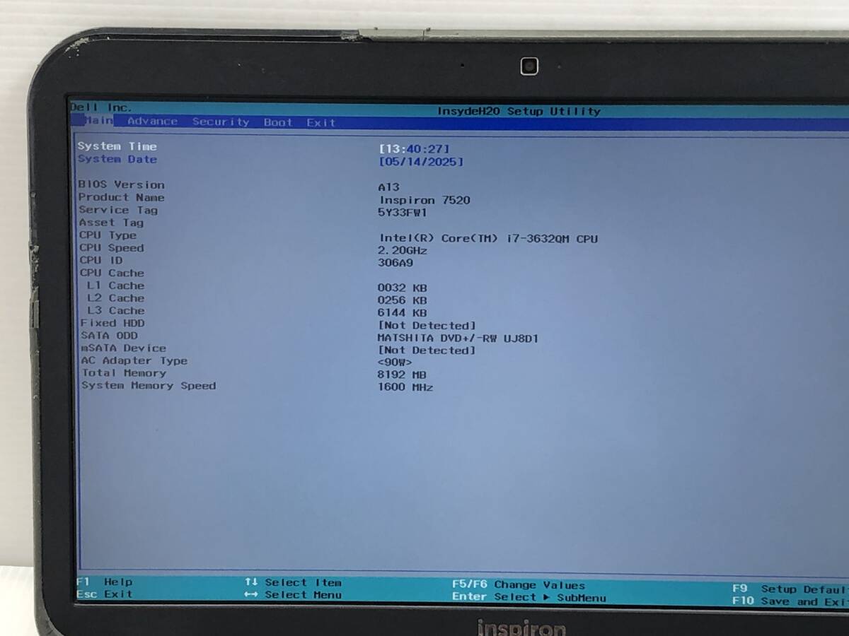 プロセッサーシール CPU | Intel Core i7-3632QM CPU @2.20GHz |