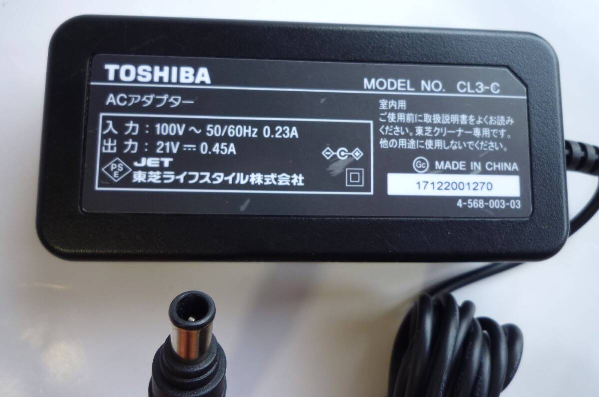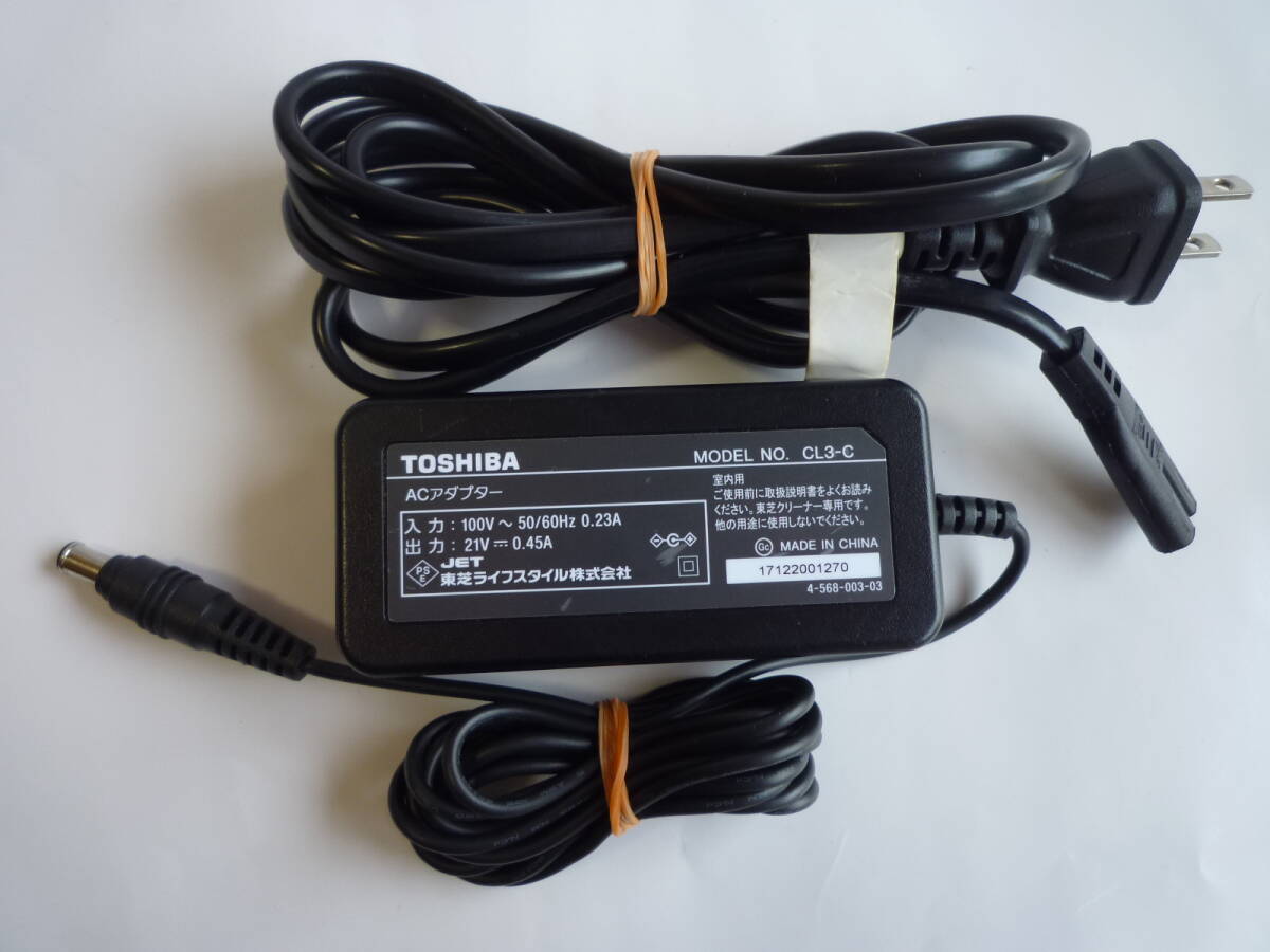 送料230円~ 純正 東芝 TOSHIBA ACアダプター 充電器 CL3-C 21V 0.45A 450mA φ6.5㎜ センターピン有 クリーナー用 掃除機用 電源コード付