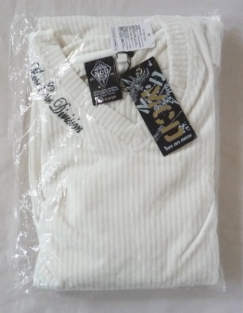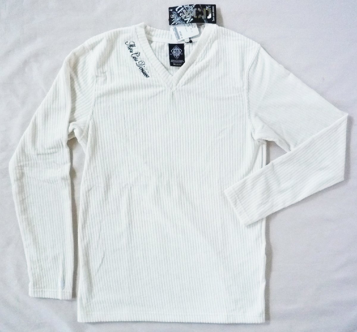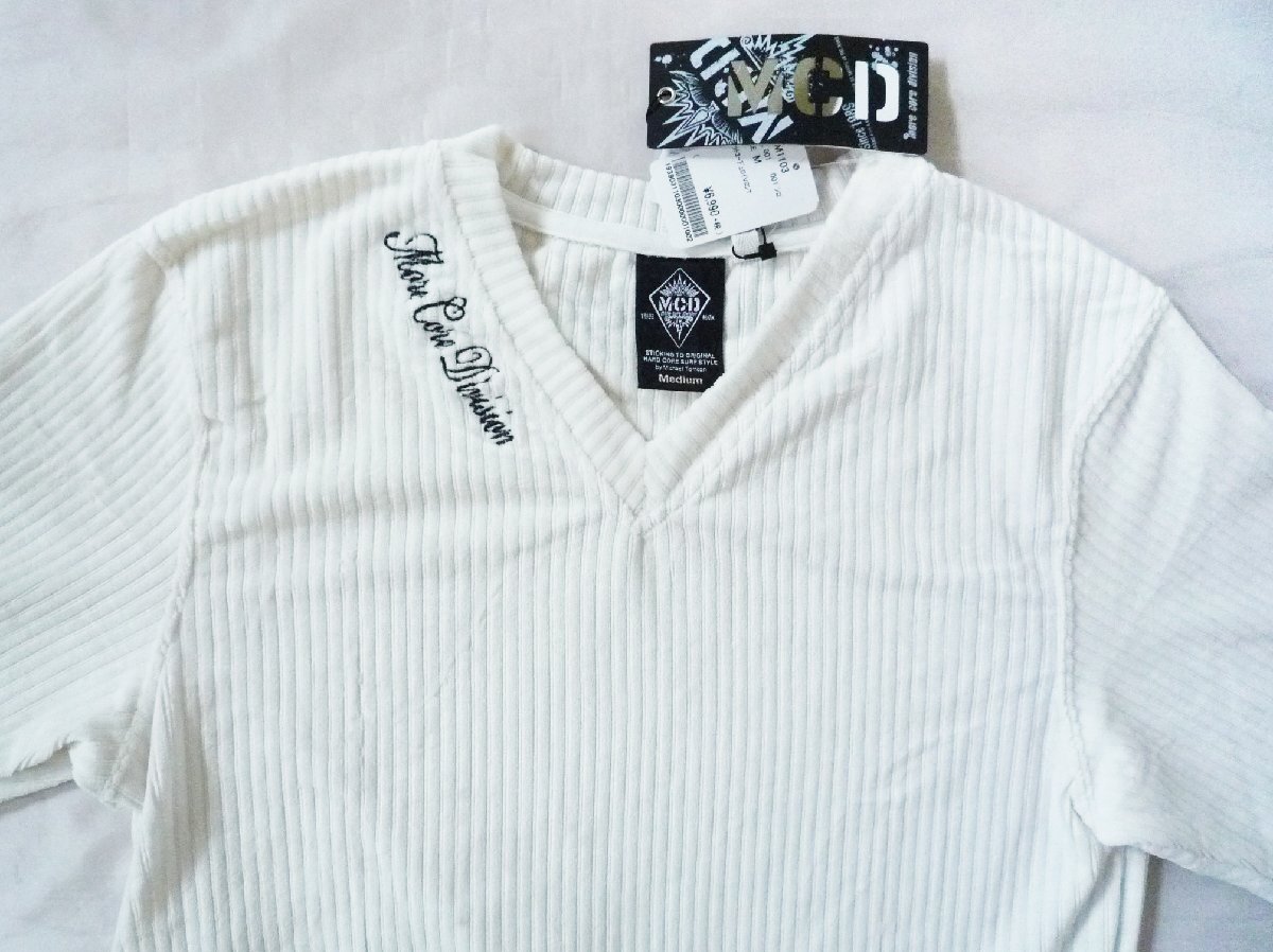 長袖シャツ MCD エム・シー・ディー 太畝コーデュロイ Vネック 刺繍 XLサイズ ホワイト 白