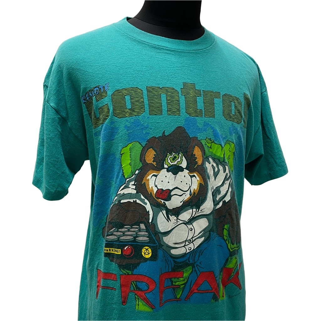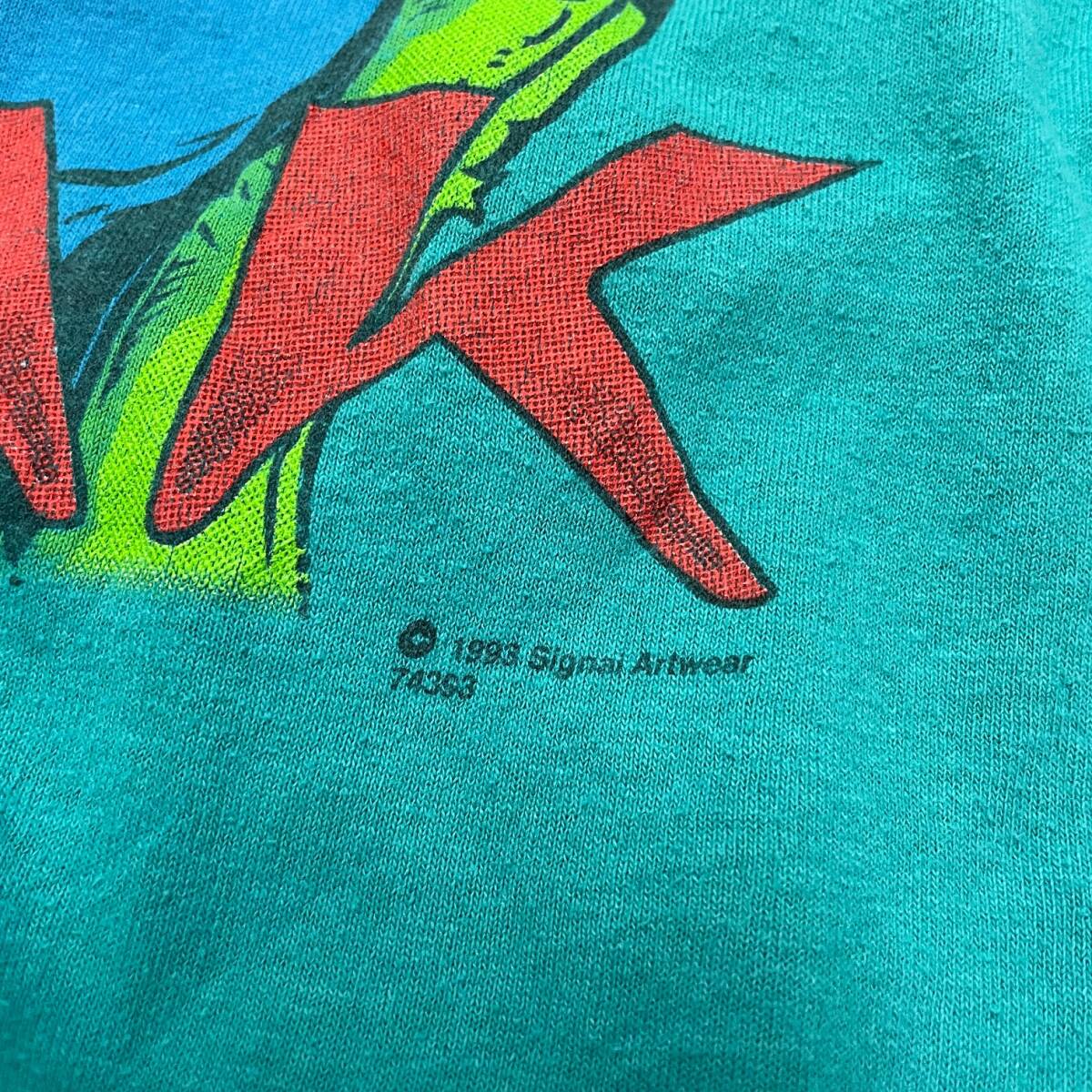 アメリカ古着になります。 90年代のビンテージです。 ユニークなプリントデザイン。 エメラルドグリーンのボディカラーも良いですね。 タグはSIGNAL、ポリ混紡の柔らかい生地です。 コピーライトは1993年。 洗濯済みになります。お探しの方におすすめです。 | |||