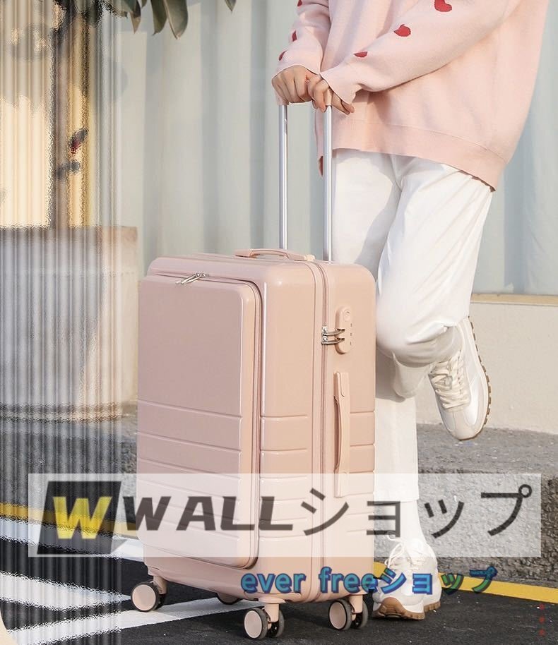 極美品★ スーツケース フロントオープン 機内持ち込み可 24インチ 軽量キャリーケース キャリーバッグ トラベルバッグTSAロック静音