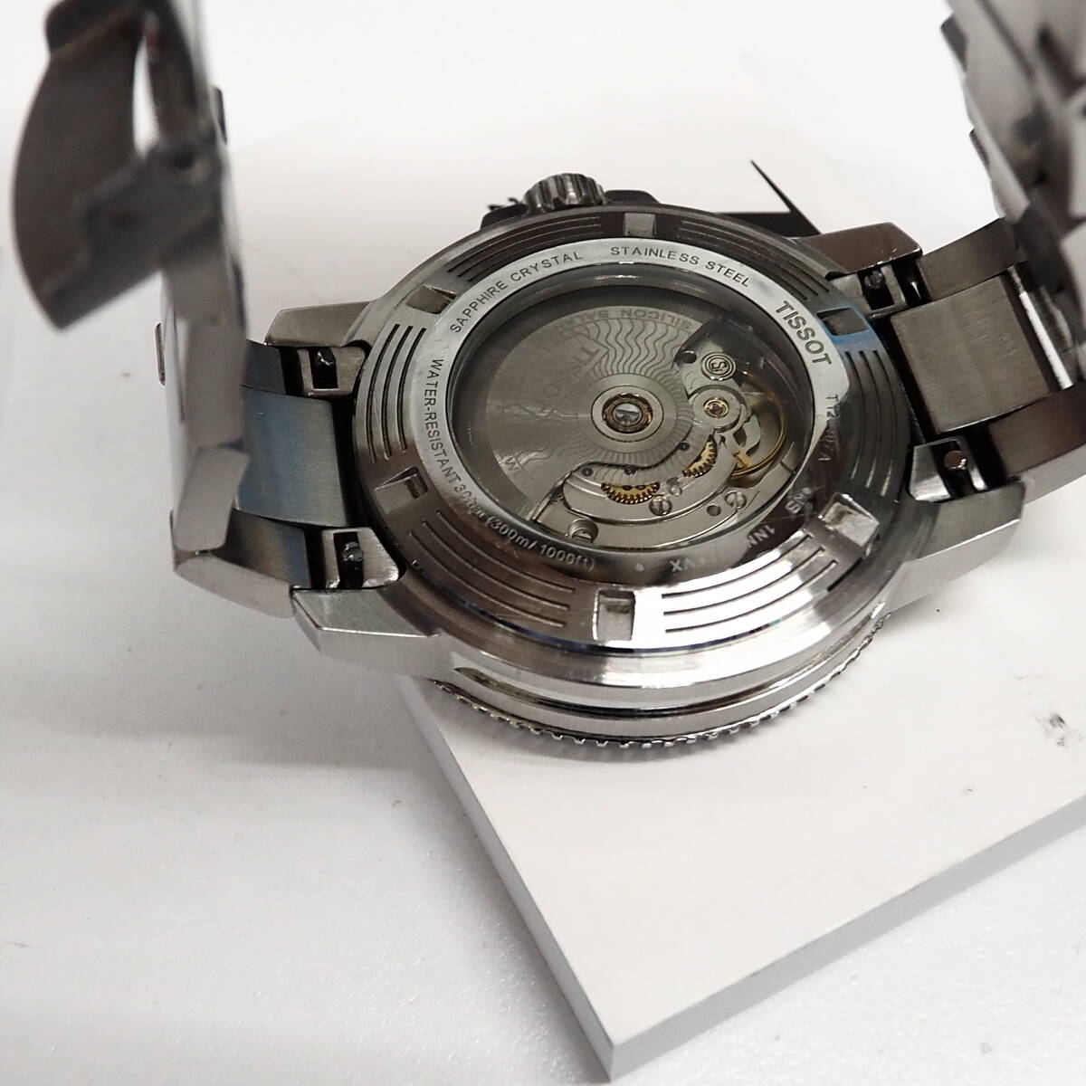 50596-600 1円スタート TISSOT ティソ メンズ腕時計 シースター T120407A グレー文字盤 SS 日付表示 自動巻き 裏蓋小傷有 送料600~