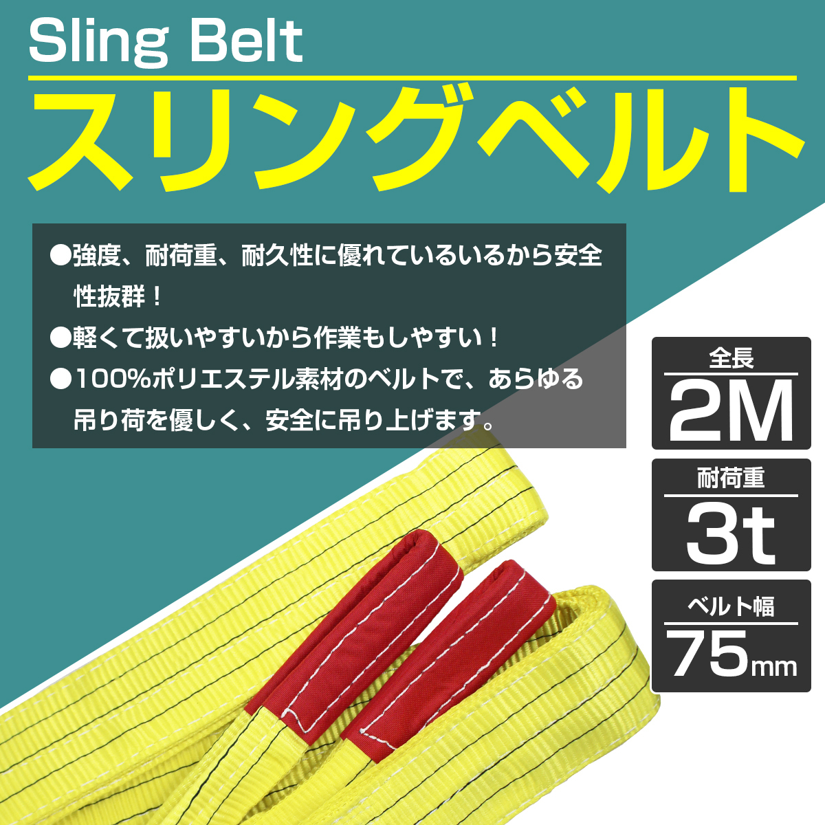 [1本/耐荷3t/長さ2m] スリング ベルト 吊上げ ナイロン クレーン ロープ 荷吊り 玉掛け 牽引 運搬 3000kg 3トン 幅75mm