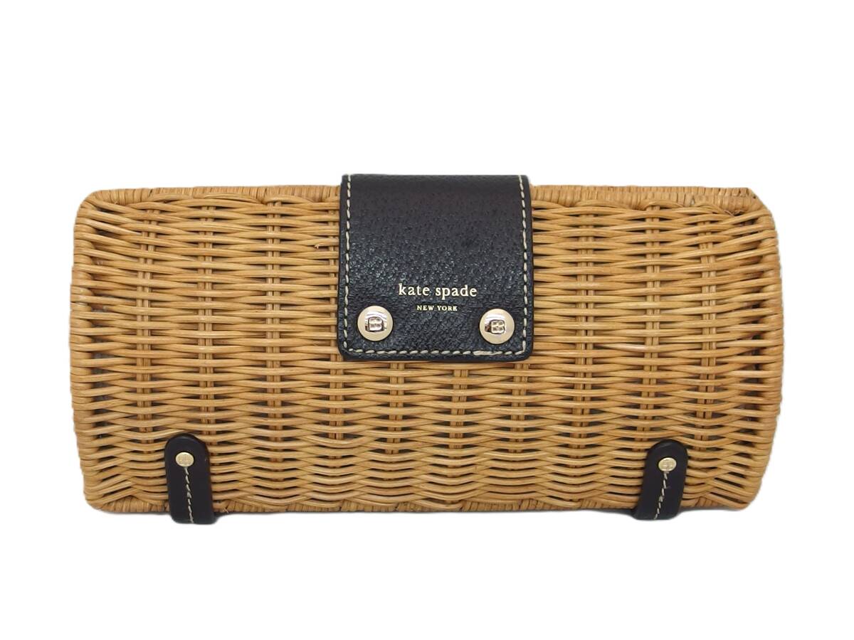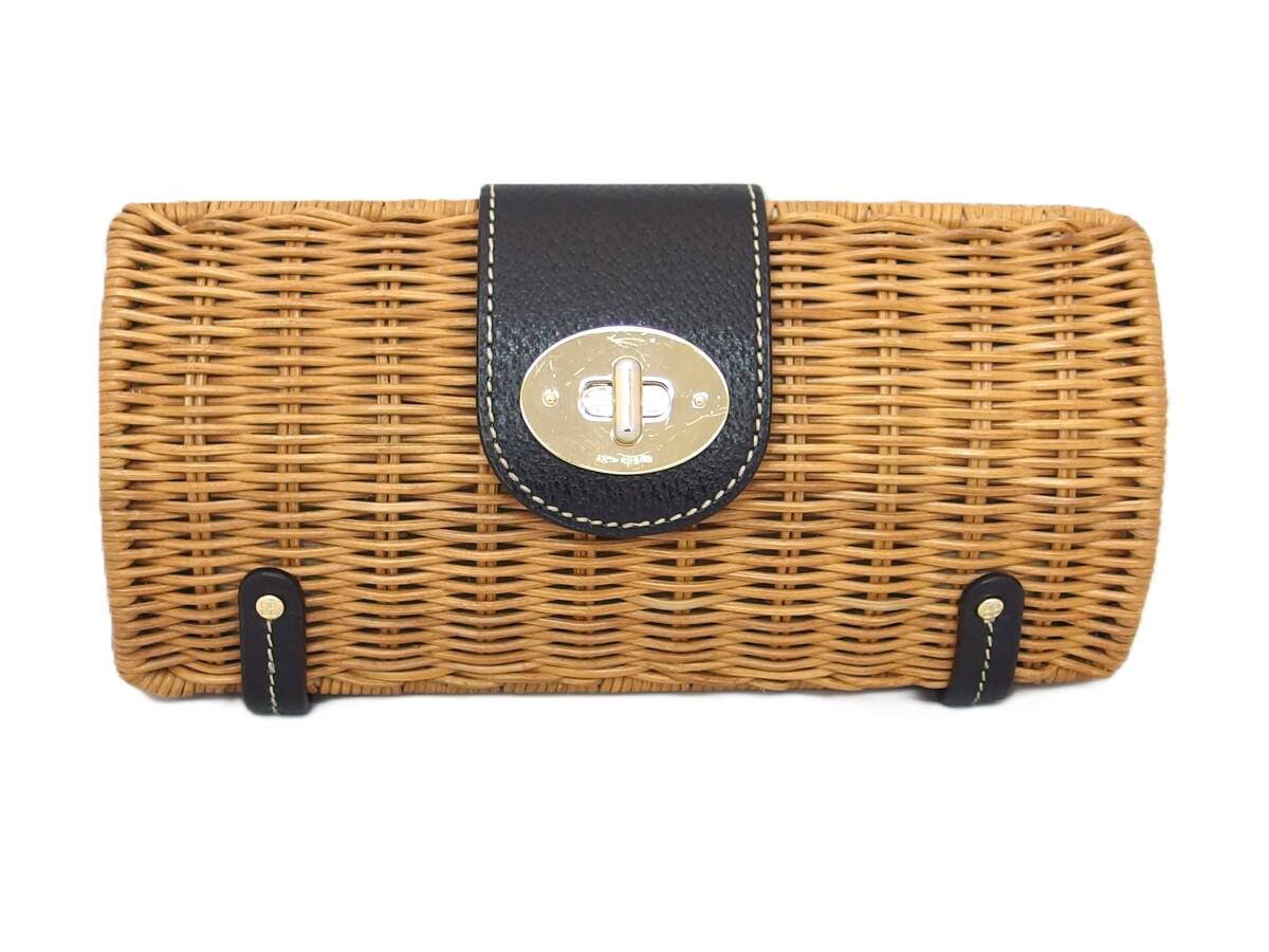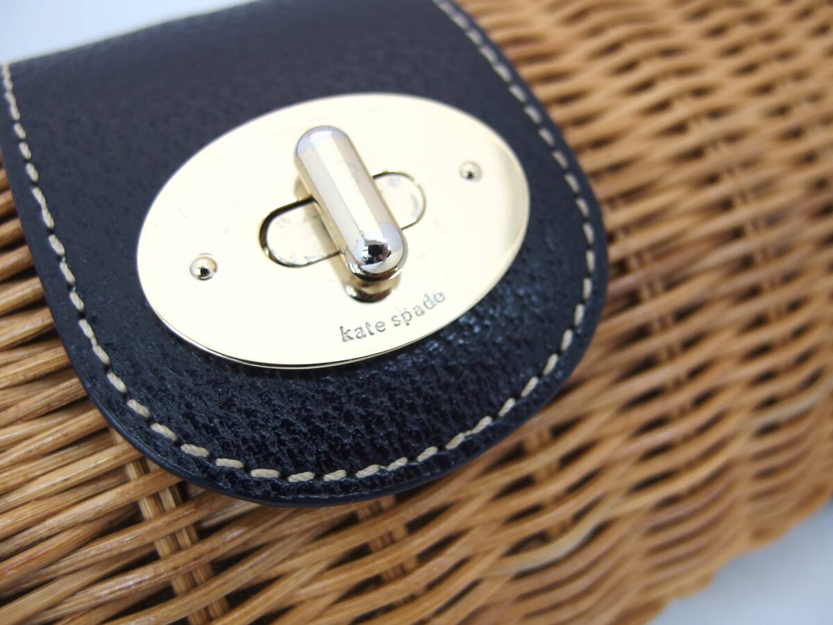 ケイトスペード 籐製 ラタン×レザー 紺 クラッチバッグ かごバッグ /B8282F