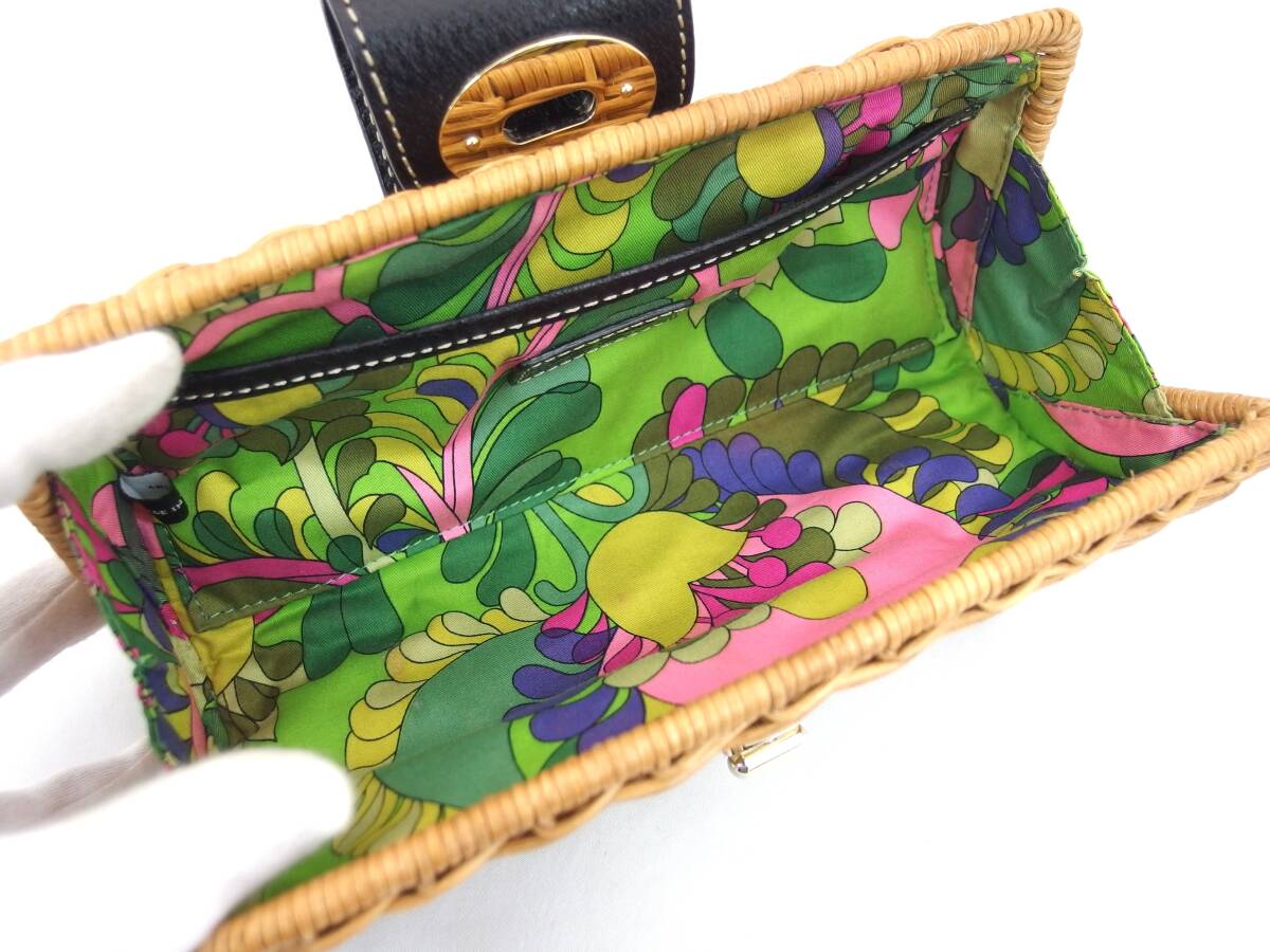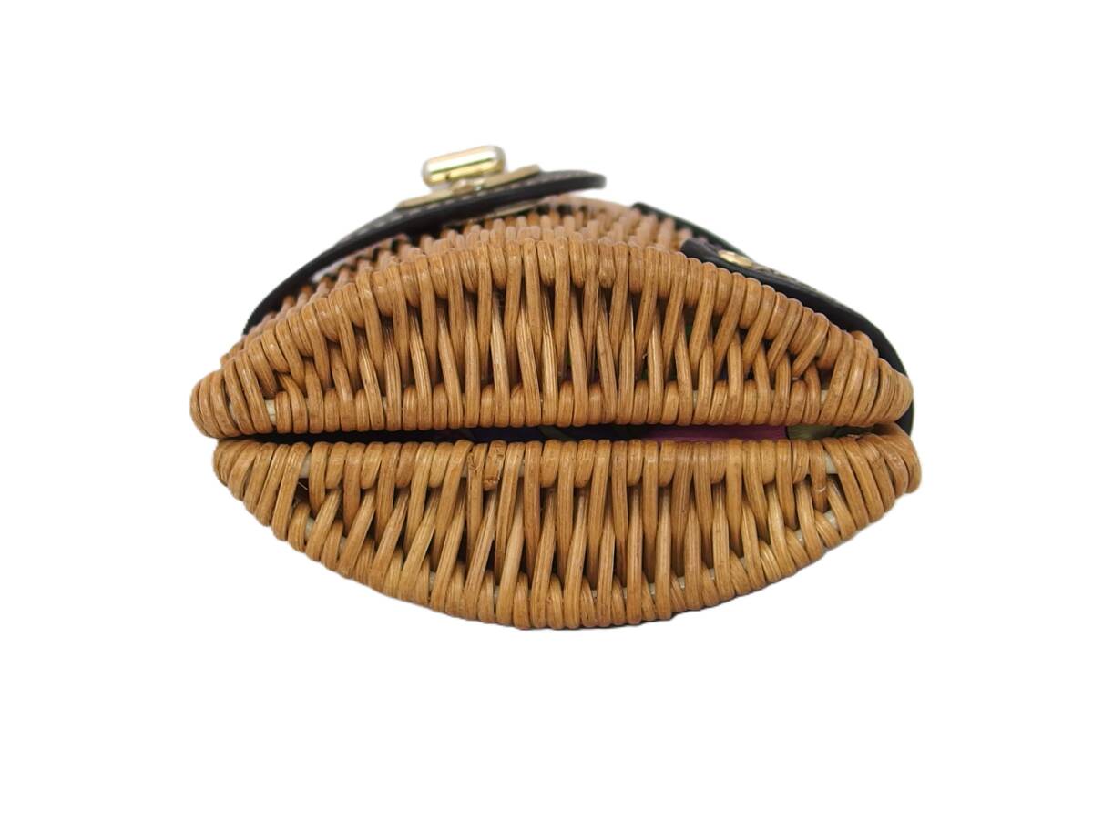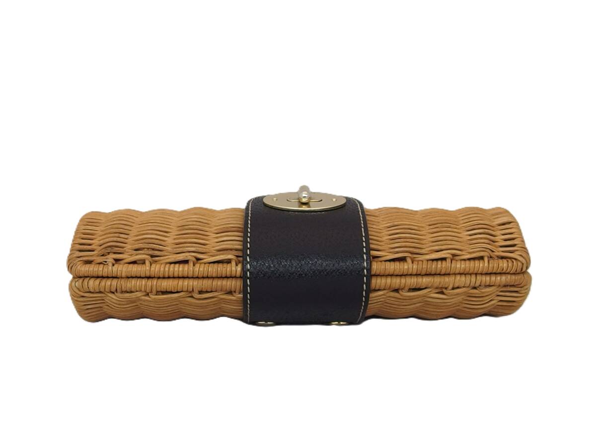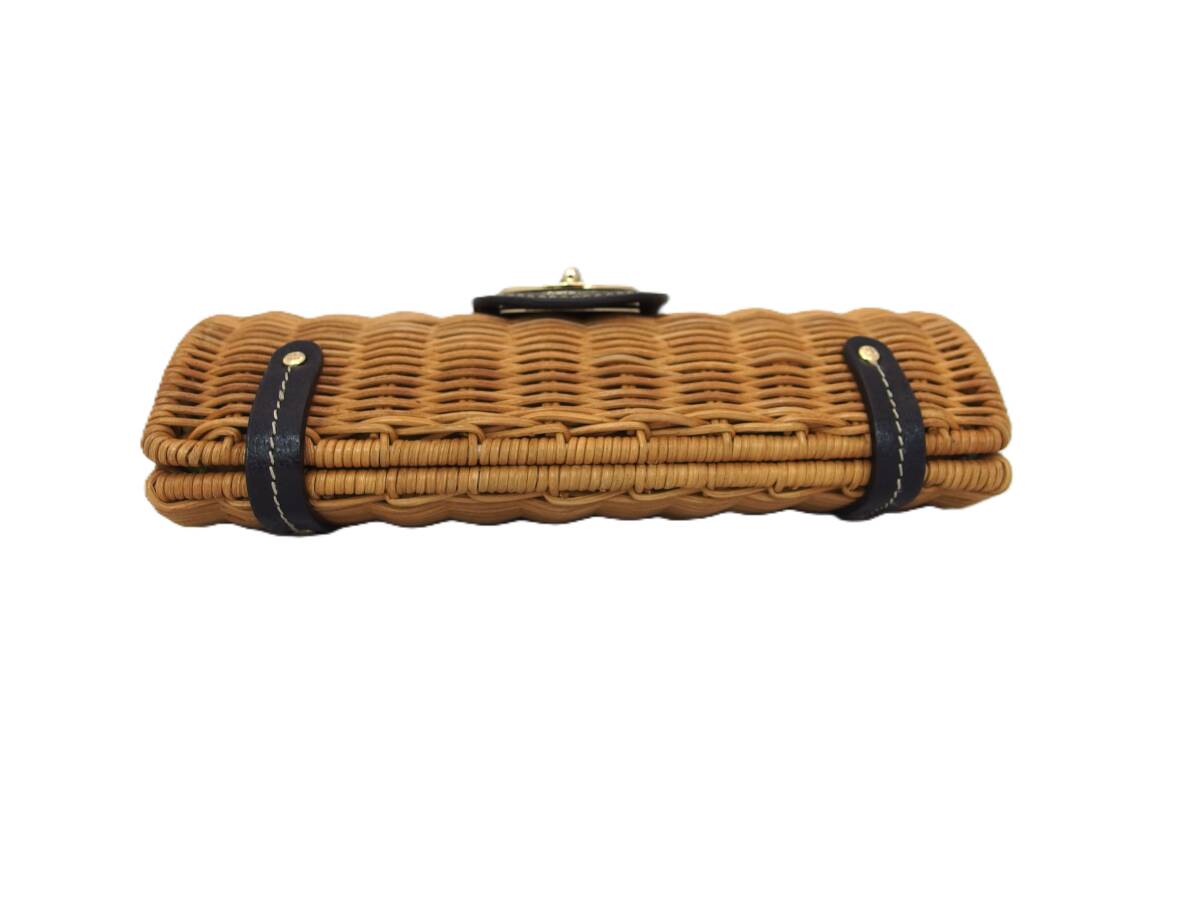 ケイトスペード 籐製 ラタン×レザー 紺 クラッチバッグ かごバッグ /B8282F
