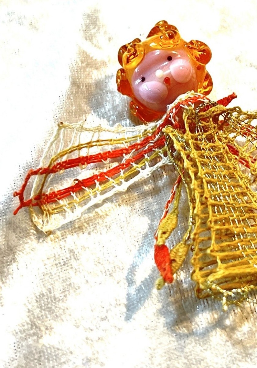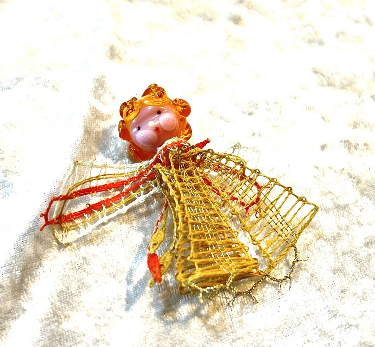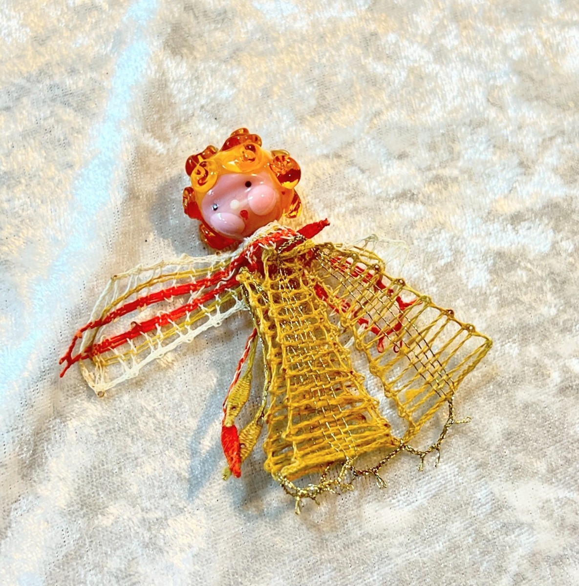 【アクセサリー】天使のペンダントトップ ガラス細工と刺繍 コスチュームジュエリー おしゃれアイテム ビンテージ商品説明+++ 商品名:天使のペンダントトップ
