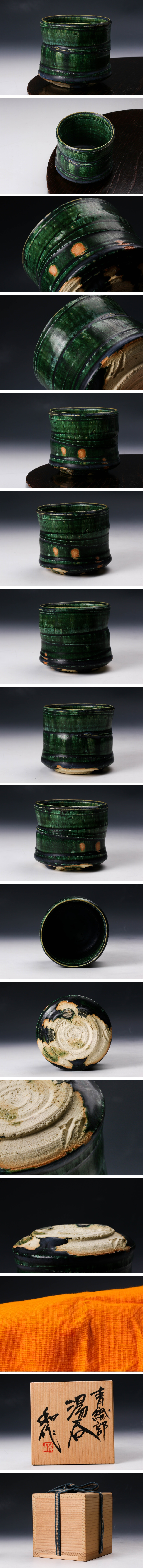 【佳香】山田和 青織部湯呑 共箱 共布 本物保証