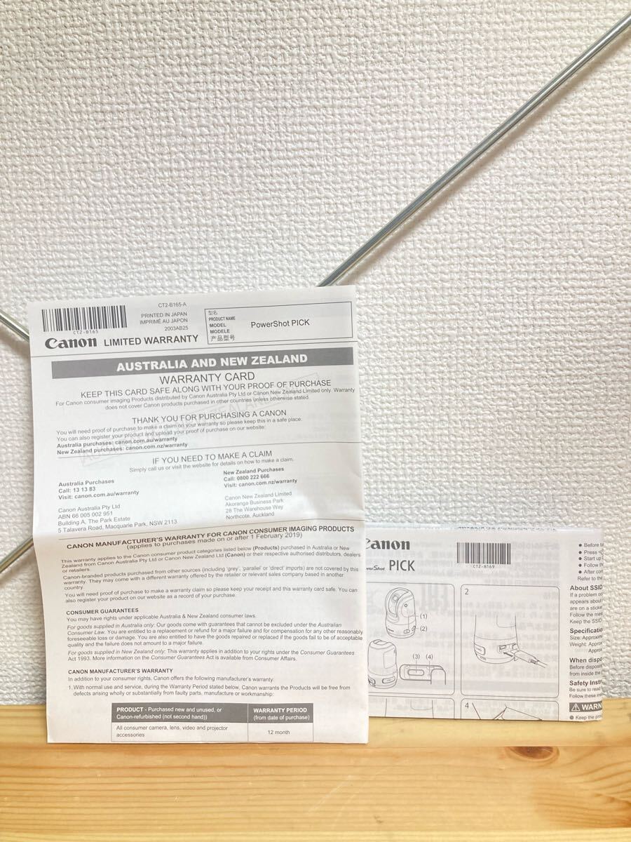 カメラ本体、電源ケーブル、取扱説明書、元箱