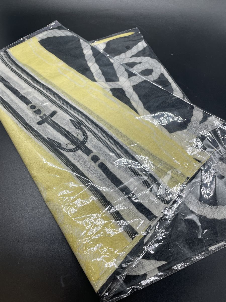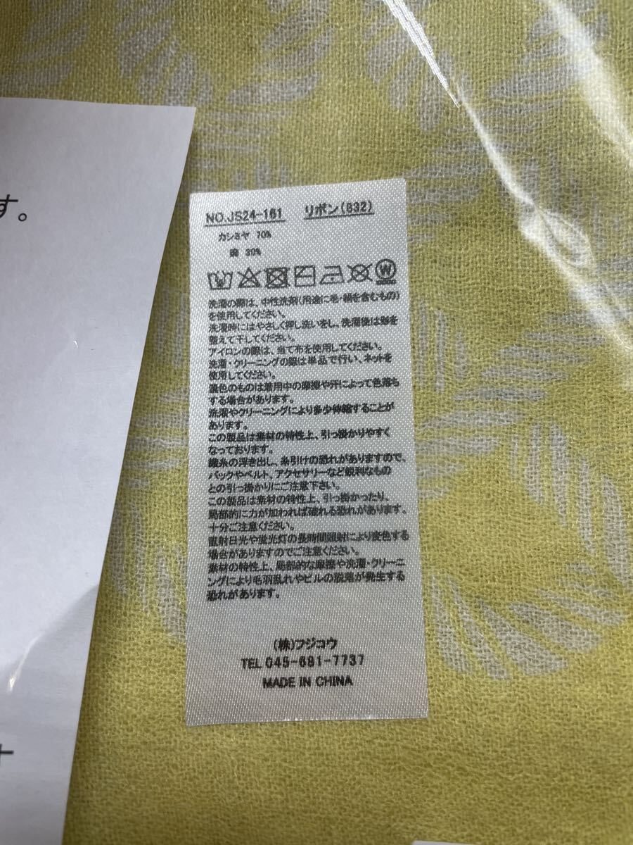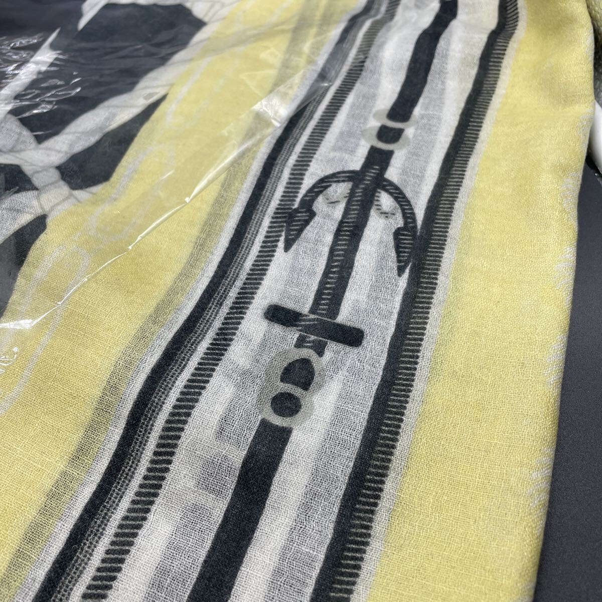未使用 ストール カシミヤ70% 麻30% 70×90cm 黄色 黒 カシミア リネン ノーブランド/レターパックライト発送 23873