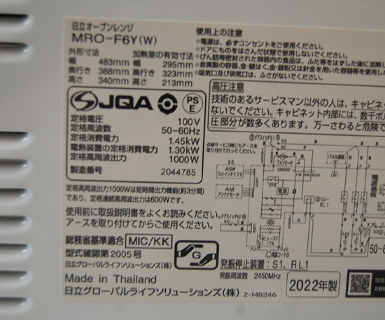 HITACHI オーブンレンジ MRO-F6Y 2022年製 22L ホワイト 動作確認済み 日立 キッチン家電 札幌市