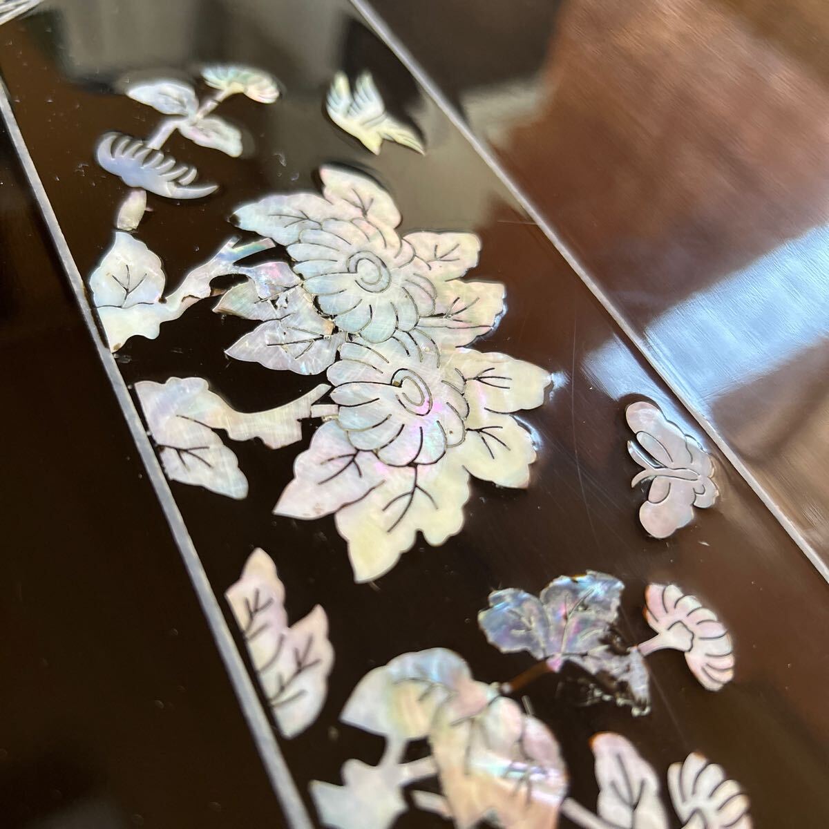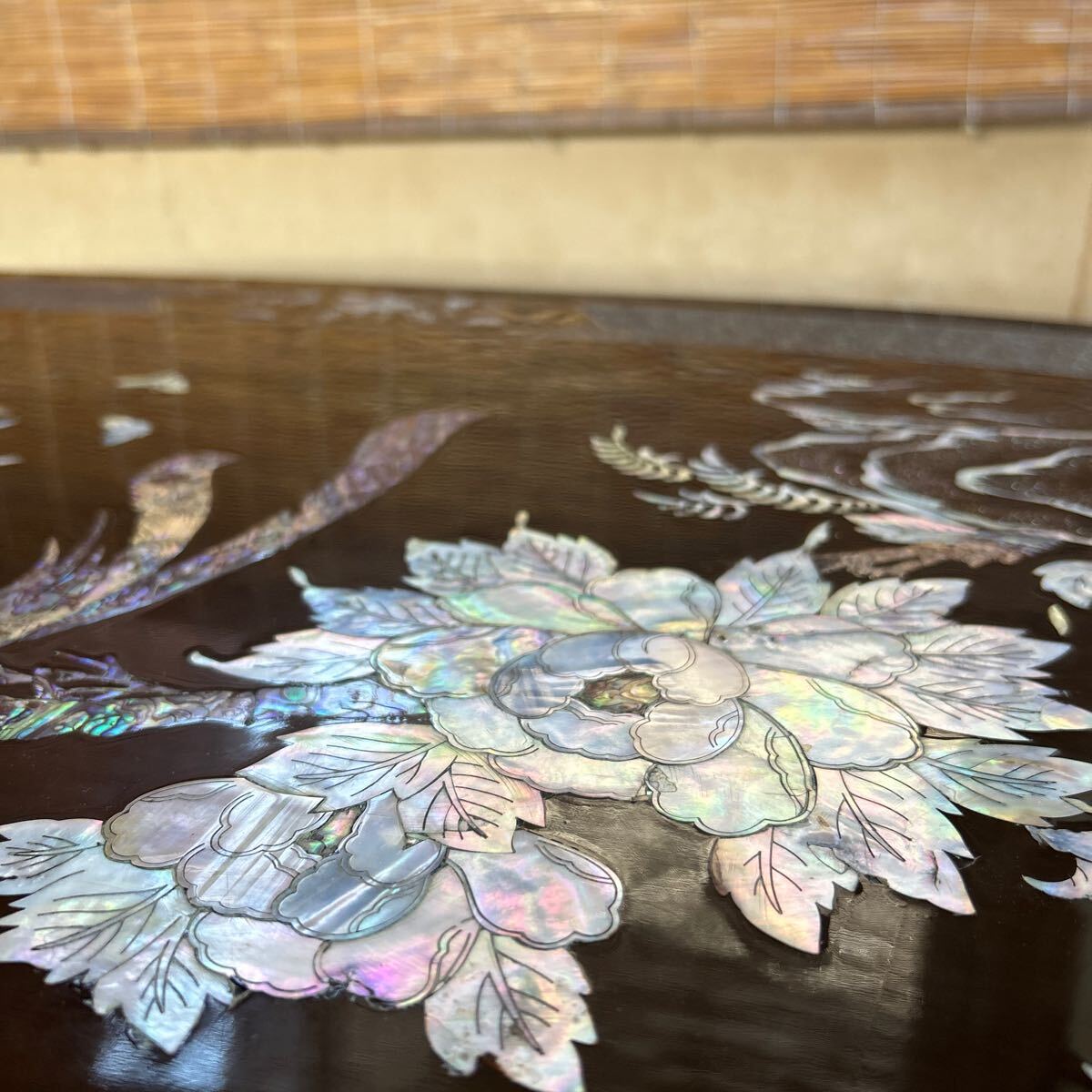 螺鈿細工のアンティークなテーブルです。