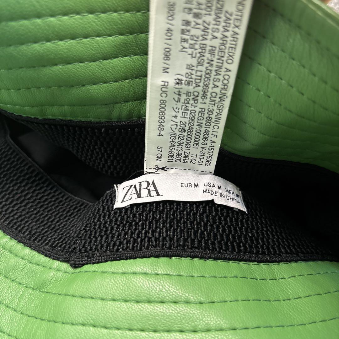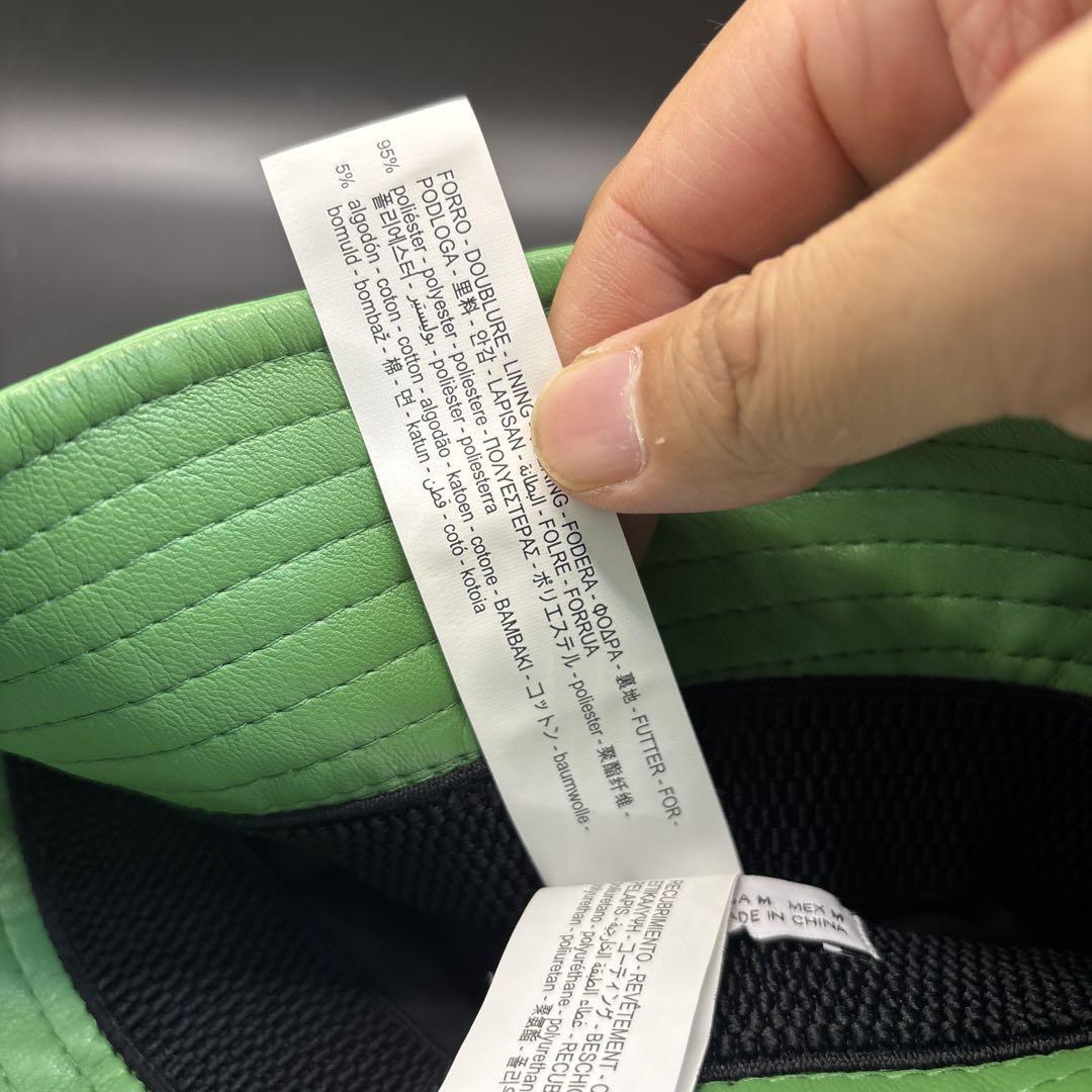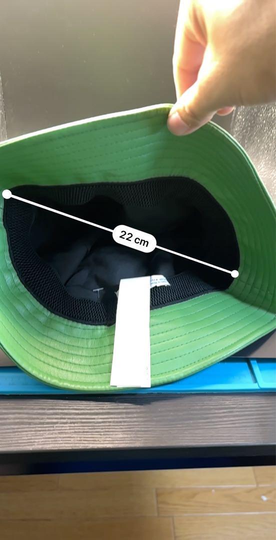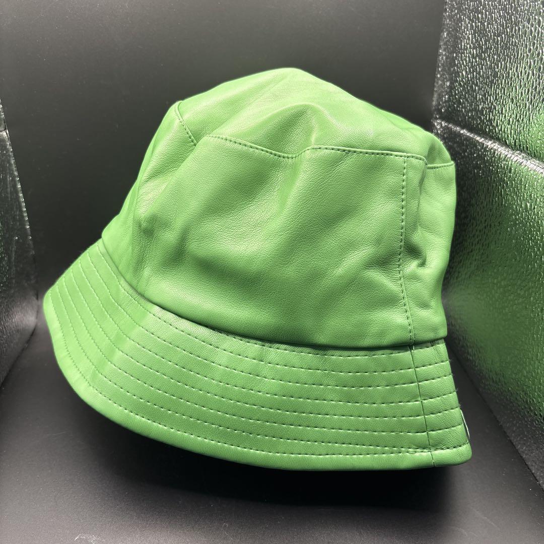 レザー製の緑色バケットハット、内側は黒。