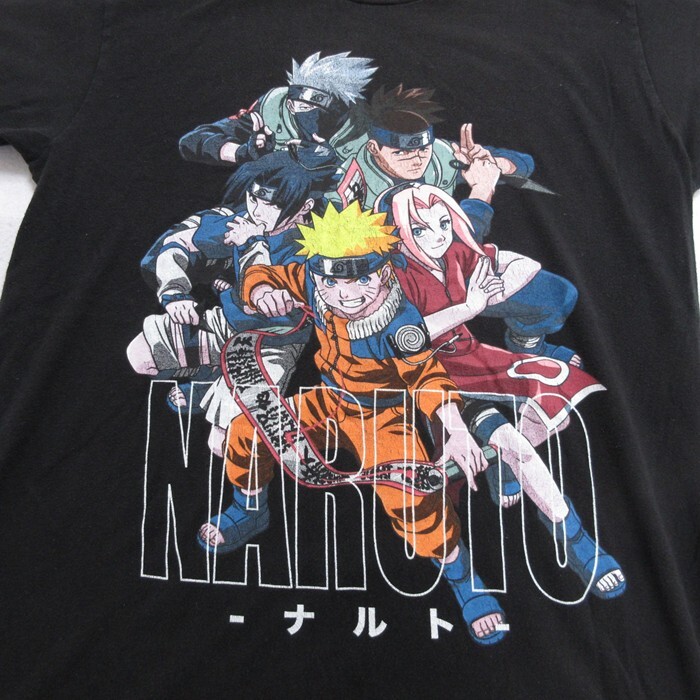 【商品名】 M★古着 半袖 Tシャツ メンズ アニメ ナルト疾風伝 うずまきナルト コットン クルーネック 黒