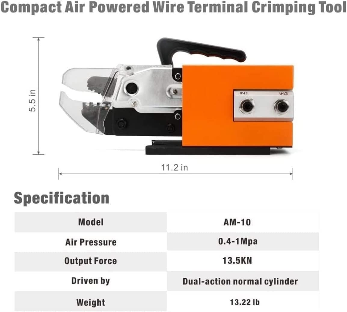 空気圧圧着工具、エアパワーワイヤ端子、4 つのダイセットとペダル圧着付き、最大 16mm2 のさまざまな端子用の空気圧クリンパプライヤー