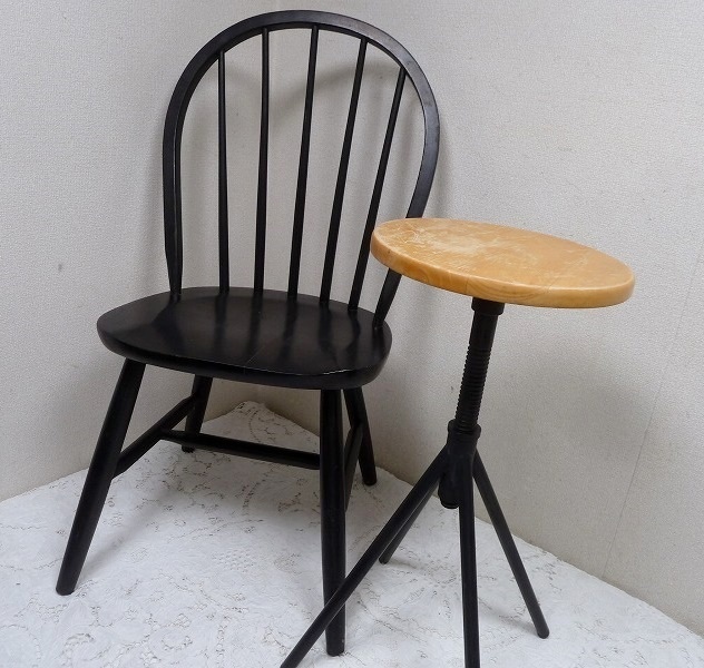 (☆BM)ブラックチェア&サイドテーブル 2点セット カフェセット 木製 黒 サイドテーブル 曲木 アーチ型 レトロ