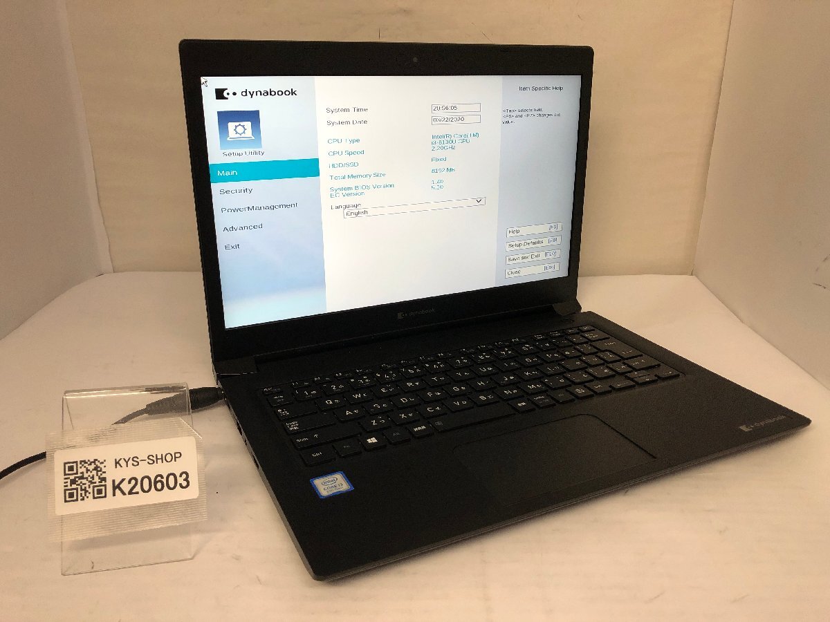 ジャンク/ TOSHIBA dynabook S73/DP A6S3DPG47512 Intel Core i3-8130U メモリ8.19GB ストレージ無し 【K20603】