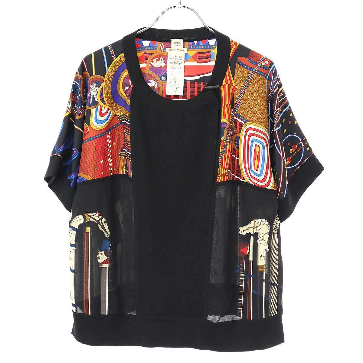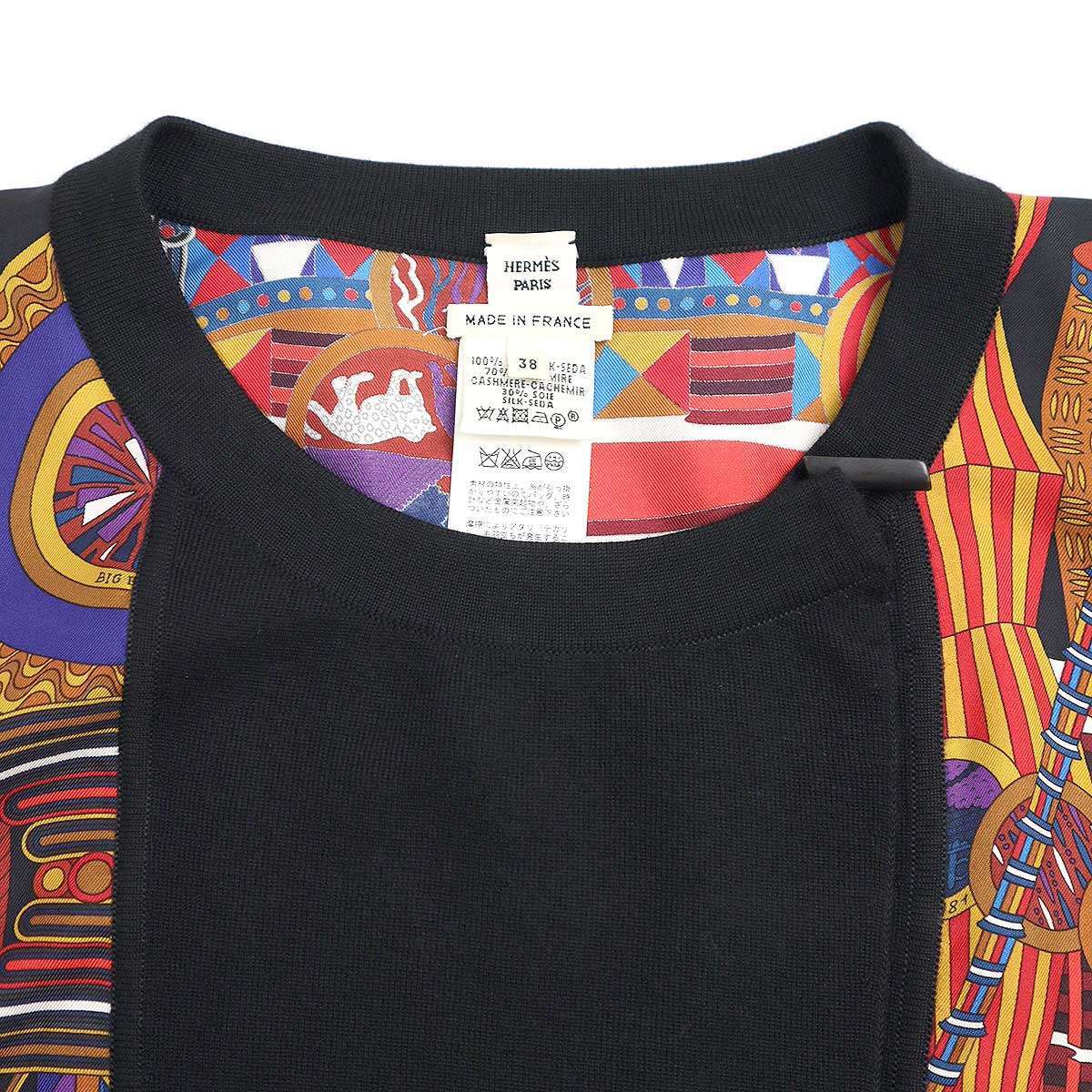 HERMES エルメス 10AW ツイルレーヌ ステッキスカーフ カシミヤニットトップス ブラック 38 IT8Q2KWRQ4TG