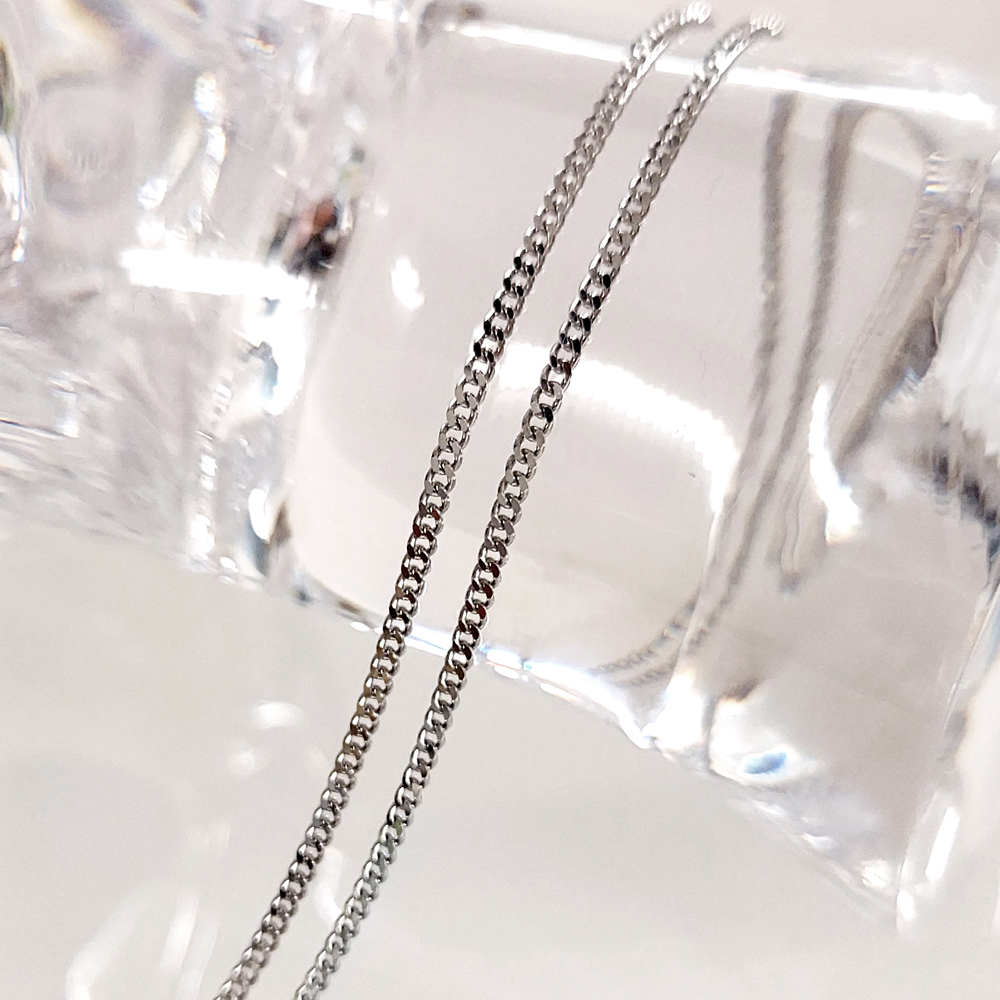 | サイズ | チェーン: 長さ 50cm 幅 約 1.4 × 0.8 mm 金具プレート:幅 約 3 mm 重量 約 5 g前後 長さは1cm単位でのオーダーも可能です。 相場で金額変動致しますので、その都度お見積りとなります。 |