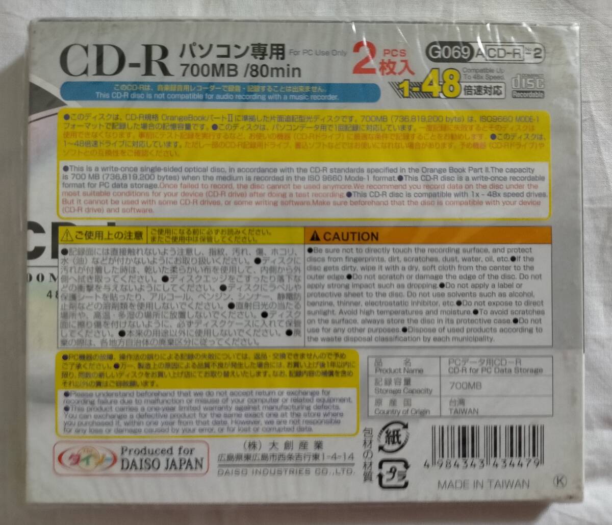 ③ダイソー  [生産終了]CD-R700MB80分2枚入り 白