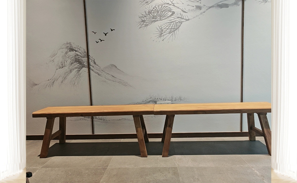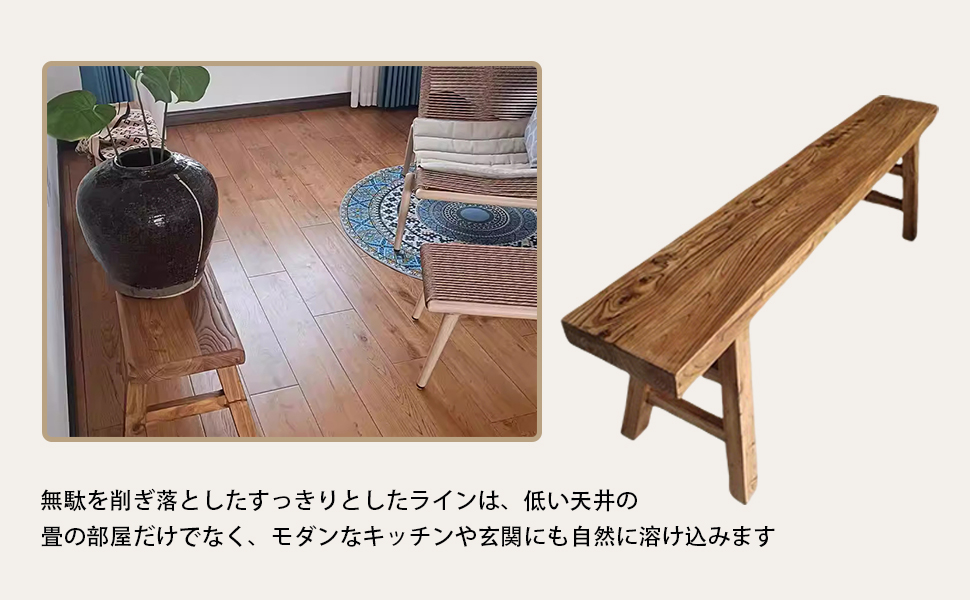 ?豊富なサイズ展開:無垢材のベンチは様々な長さがあり、1人から6人まで同時に座ることができます。独立したダイニングチェアに比べて、家具間の隙間をなくし、レストランやキッチンのスペースを節約できます。少人数のファミリーや、レストラン(調理場、家庭的なレストランなど)など、コンパクトなレイアウトが求められるシーンでは、すっきりとした印象を保ちながら座席数を増やすことができます。