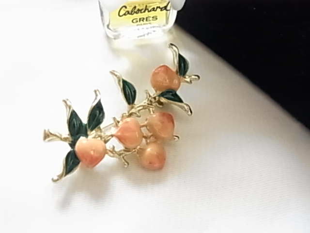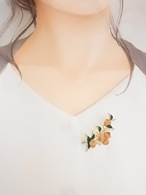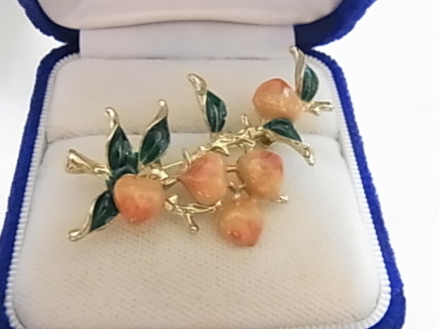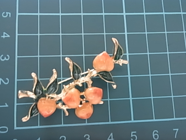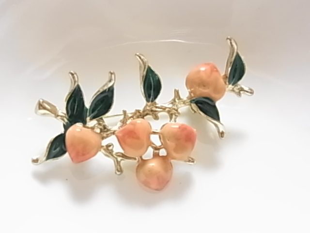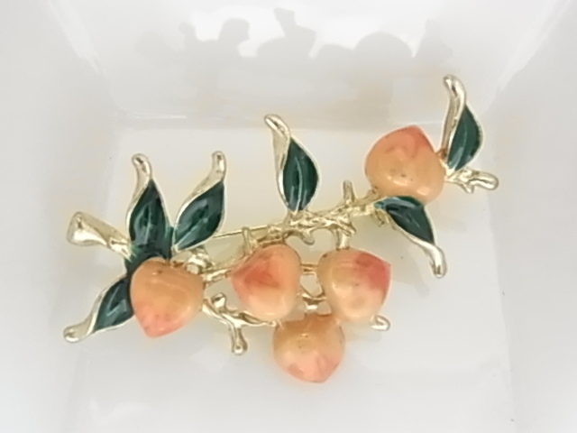 未使用 桃 ピーチデザイン フルーツ 果物 可愛い印象 エナメル加工 素敵なデザインのブローチ♪♪