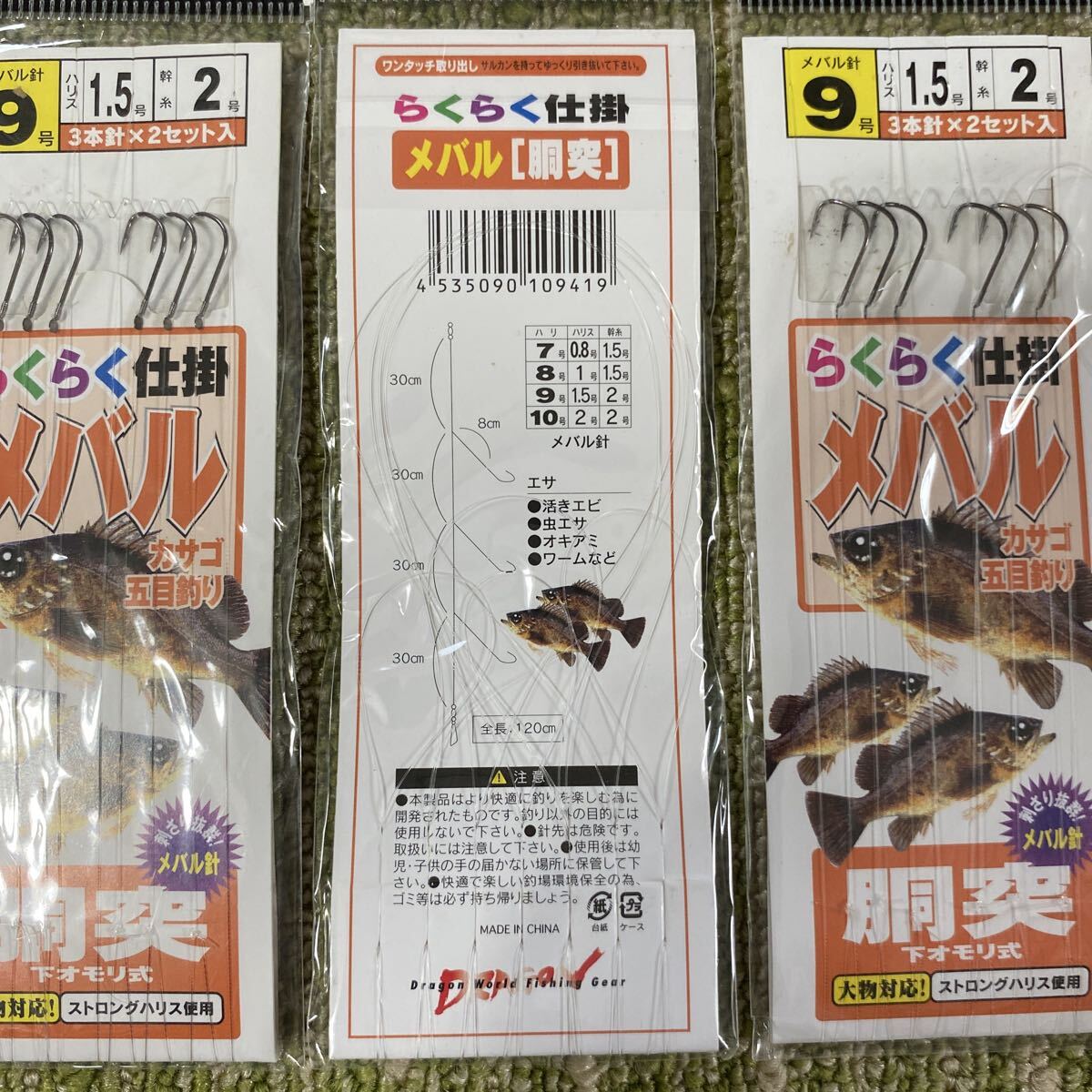 新品 らくらくメバル 9号 胴突仕掛け 3本針×2セット下オモリ式 大物対応 ストロングハリス使用 刺さり抜群 メバル針 カサゴ 五目釣りに121