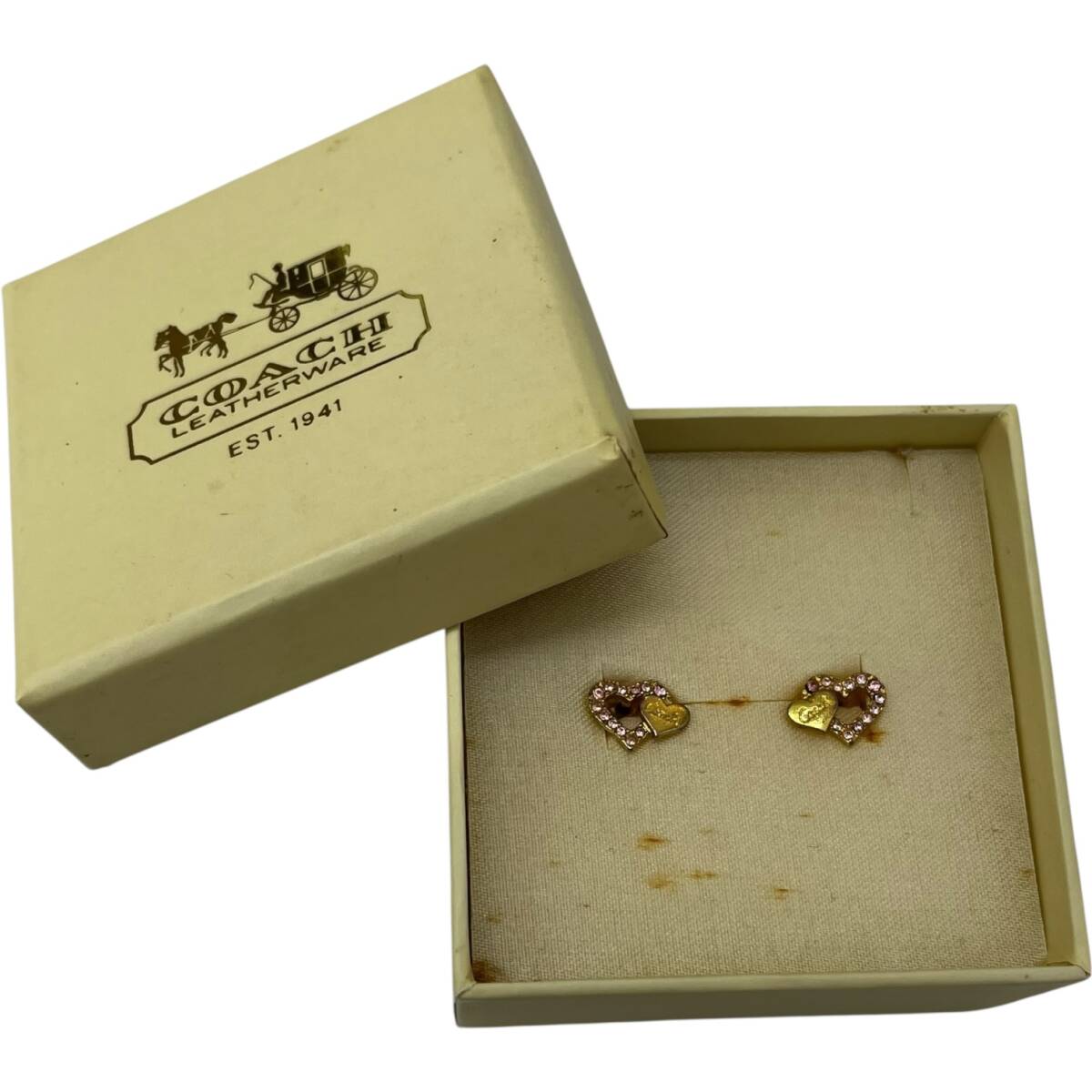 COACH コーチ ハート ピアス ゴールド ピンク ラインストーン 箱付き