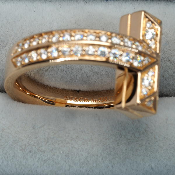 ティファニーの 『T』 の頭文字を飾った Tコレクションのダイヤモンドリング。 贅沢に飾られた厳選ダイヤの輝きとともにお手元を上品に演出するTワンワイドリングです。 |