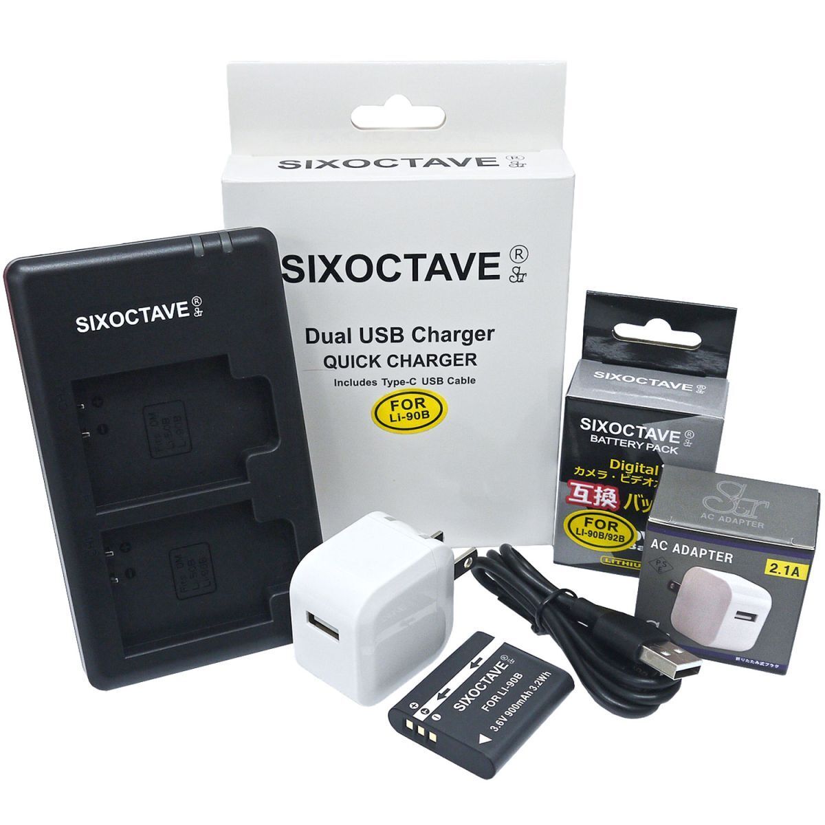 オリンパス LI-90B LI-92B 互換バッテリーと互換充電器 2.1A高速ACアダプター付Stylus TG-4 Tough Stylus TG-Tracker Stylus SP-100EE