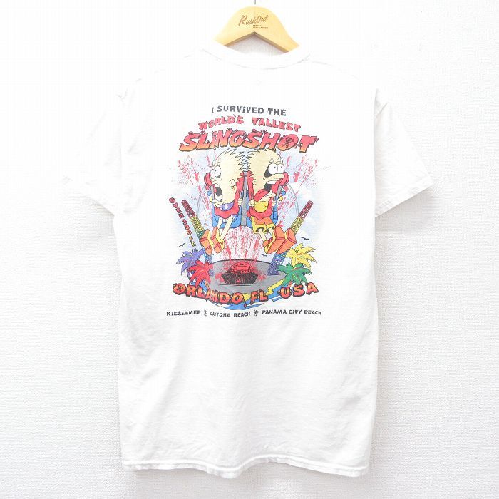 【商品名】 M★古着 半袖 ビンテージ Tシャツ メンズ 00年代 00s SLINGSHOT アトラクション コットン クルーネック 白