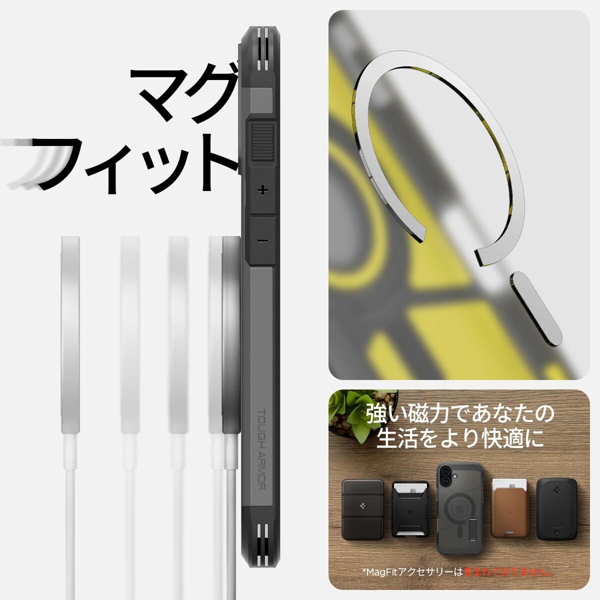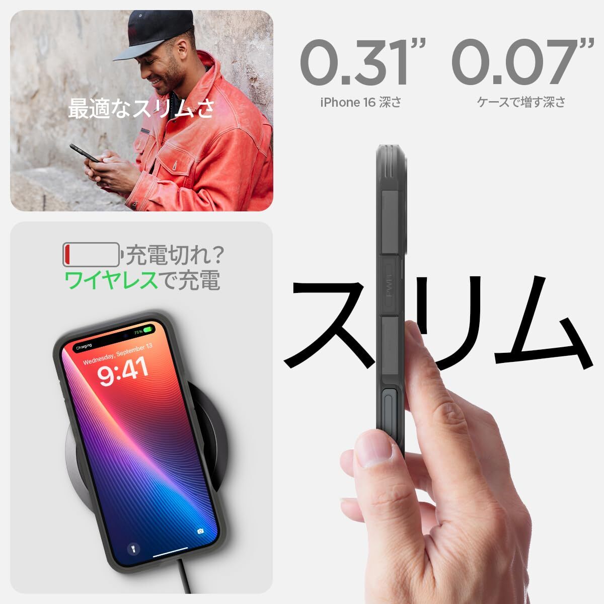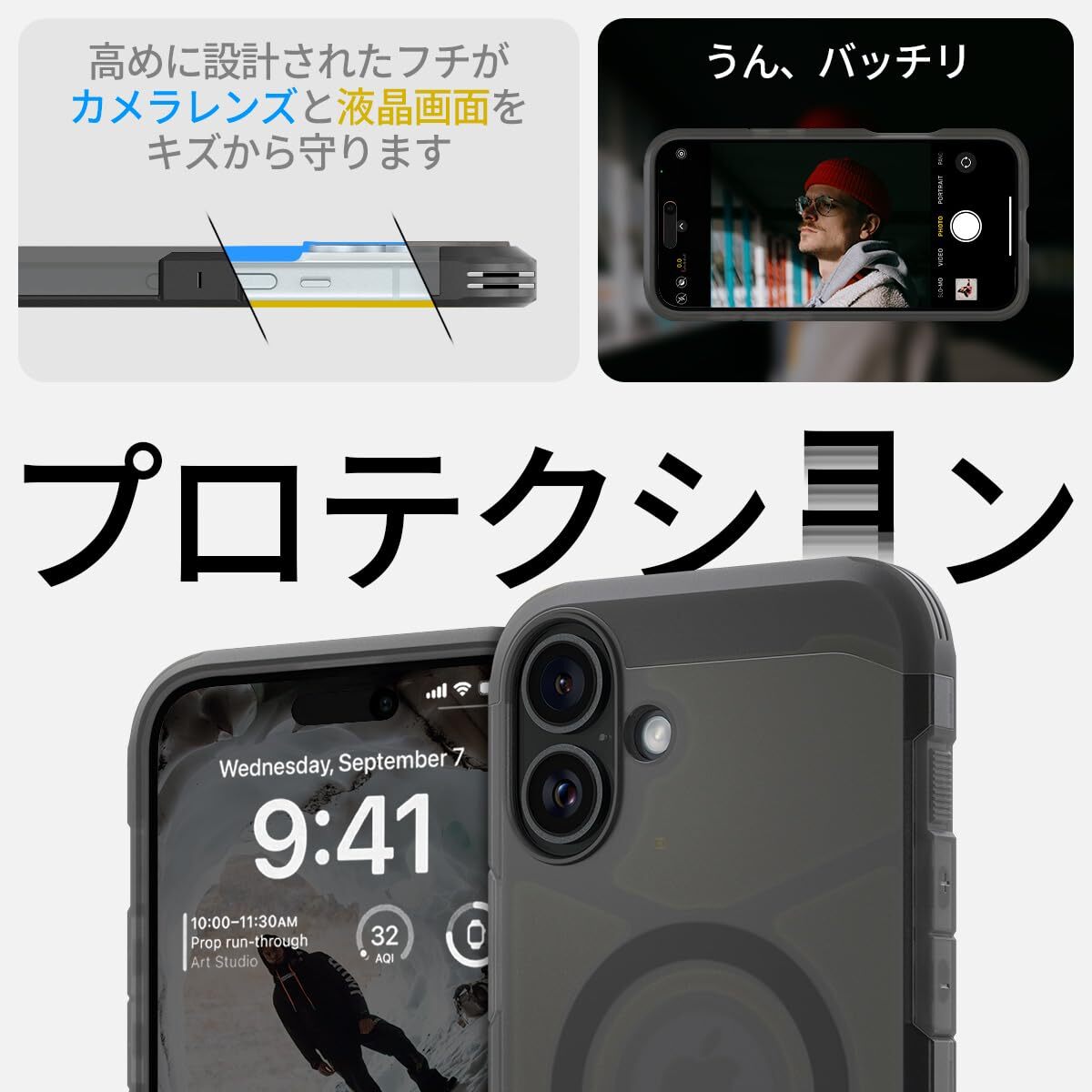Spigen iPhone 16 ケース MagSafe対応 耐衝撃 マット 2重構造 米軍MIL規格 タフ・アーマー(AI)・マグフィット ACS08515 (フロスト・ブラック)