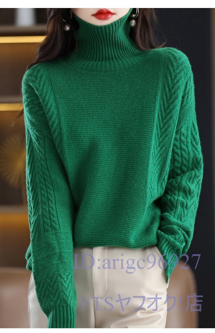 A0561☆新品Fサイズ 203040代 ニットセーター オシャレ ミンクカシミヤ混 厚地 暖かい長袖 レディース ニットトップス * グリーン