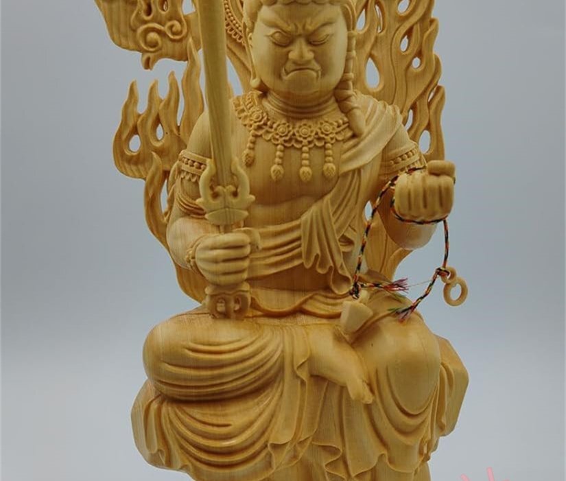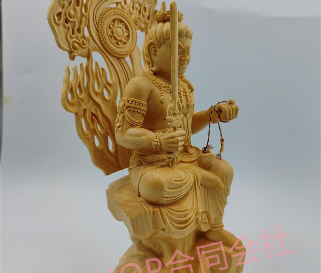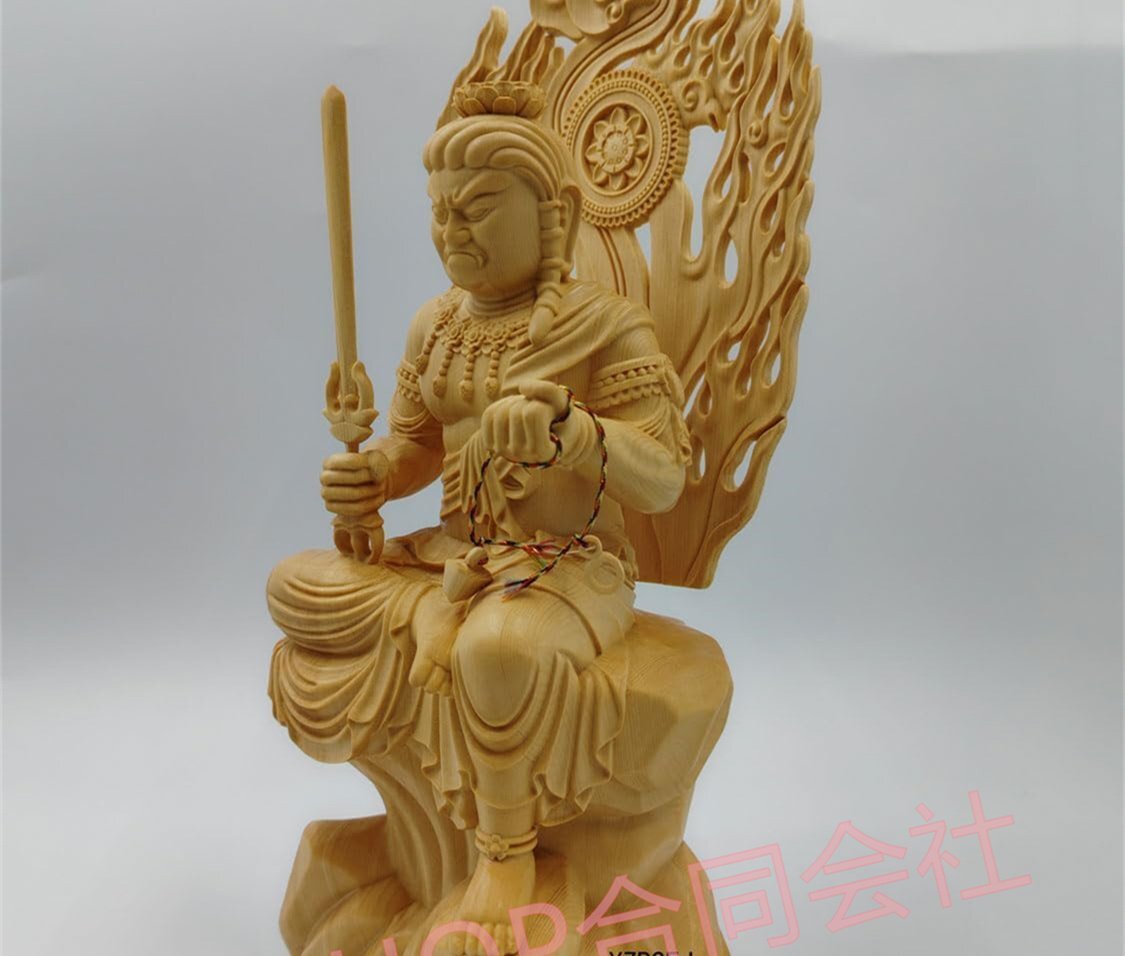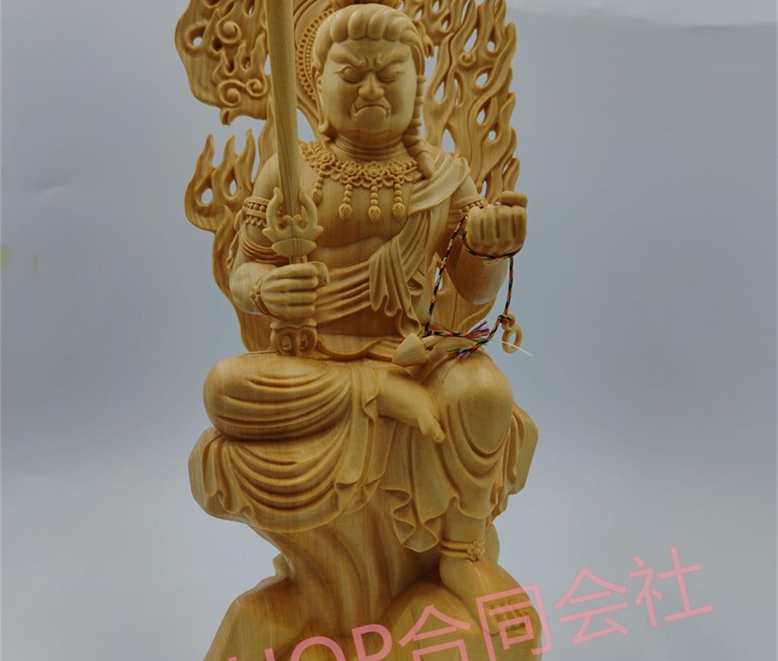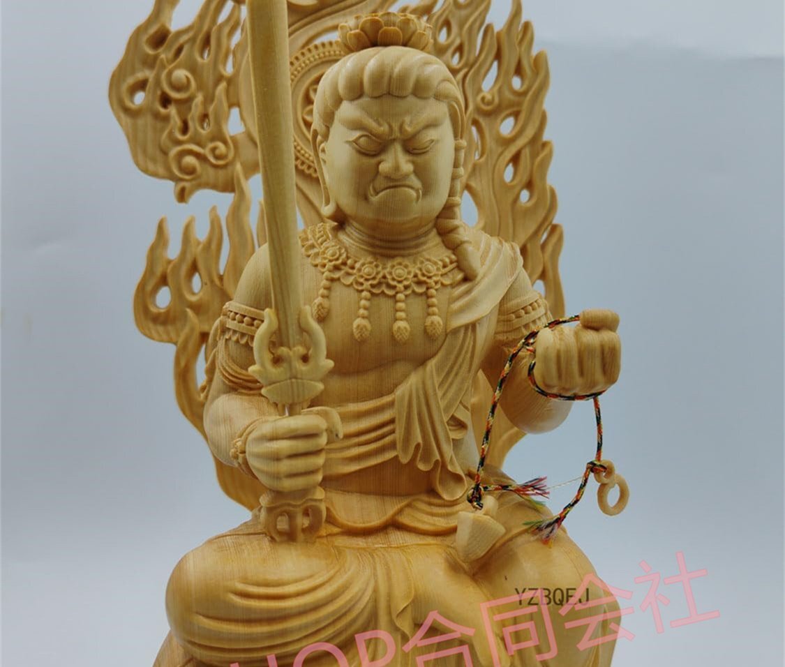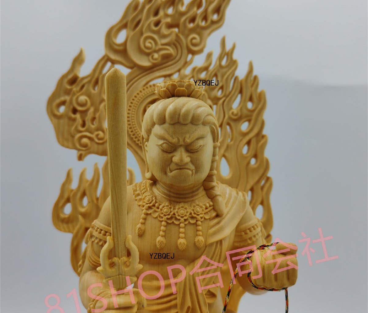「81SHOP」木彫りの仏像 不動明王(酉年生まれ) 桧木製 (高さ34cm×巾11.5cm)◆厄除け十二支守り本尊・守護仏