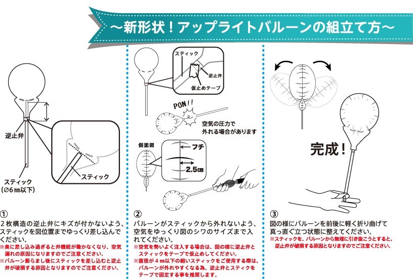 ヘリウム対応のラバーバルーン 2、スティックを挿しこむタイプのバルーン 3柄×1のセットです。