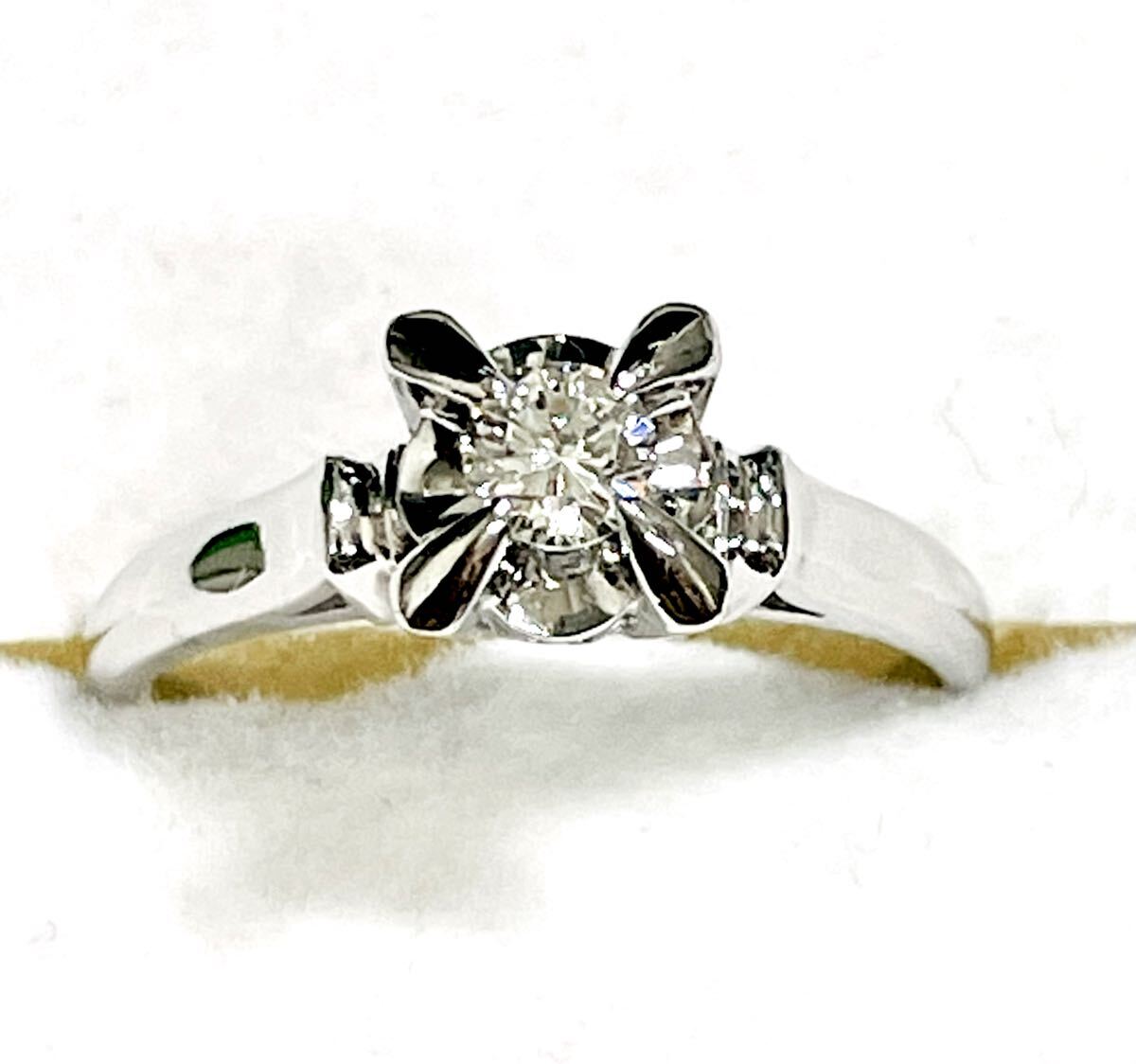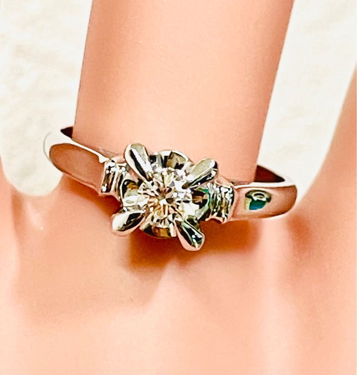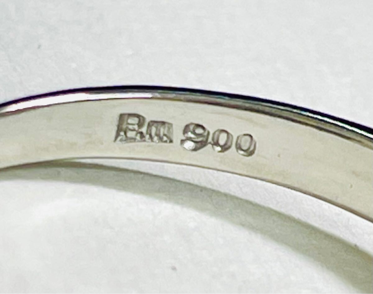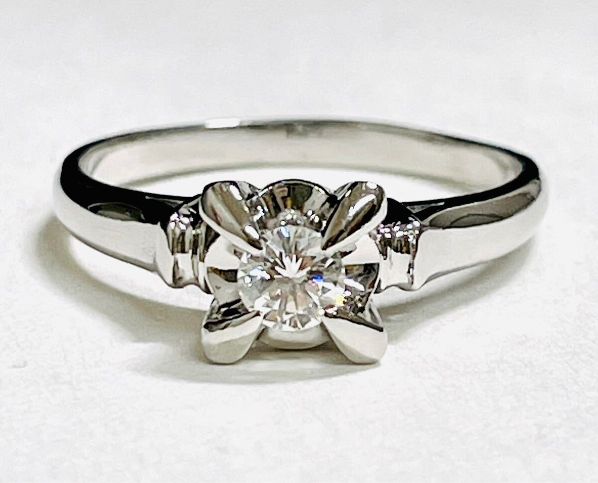 こちらは、Pt900台にダイヤ1石付き立爪リングです。