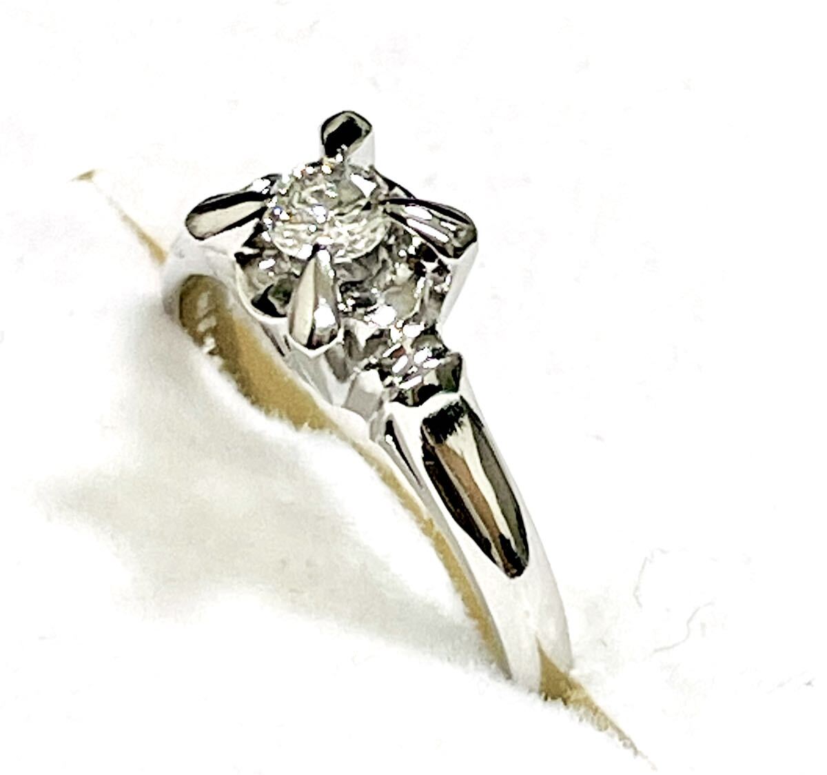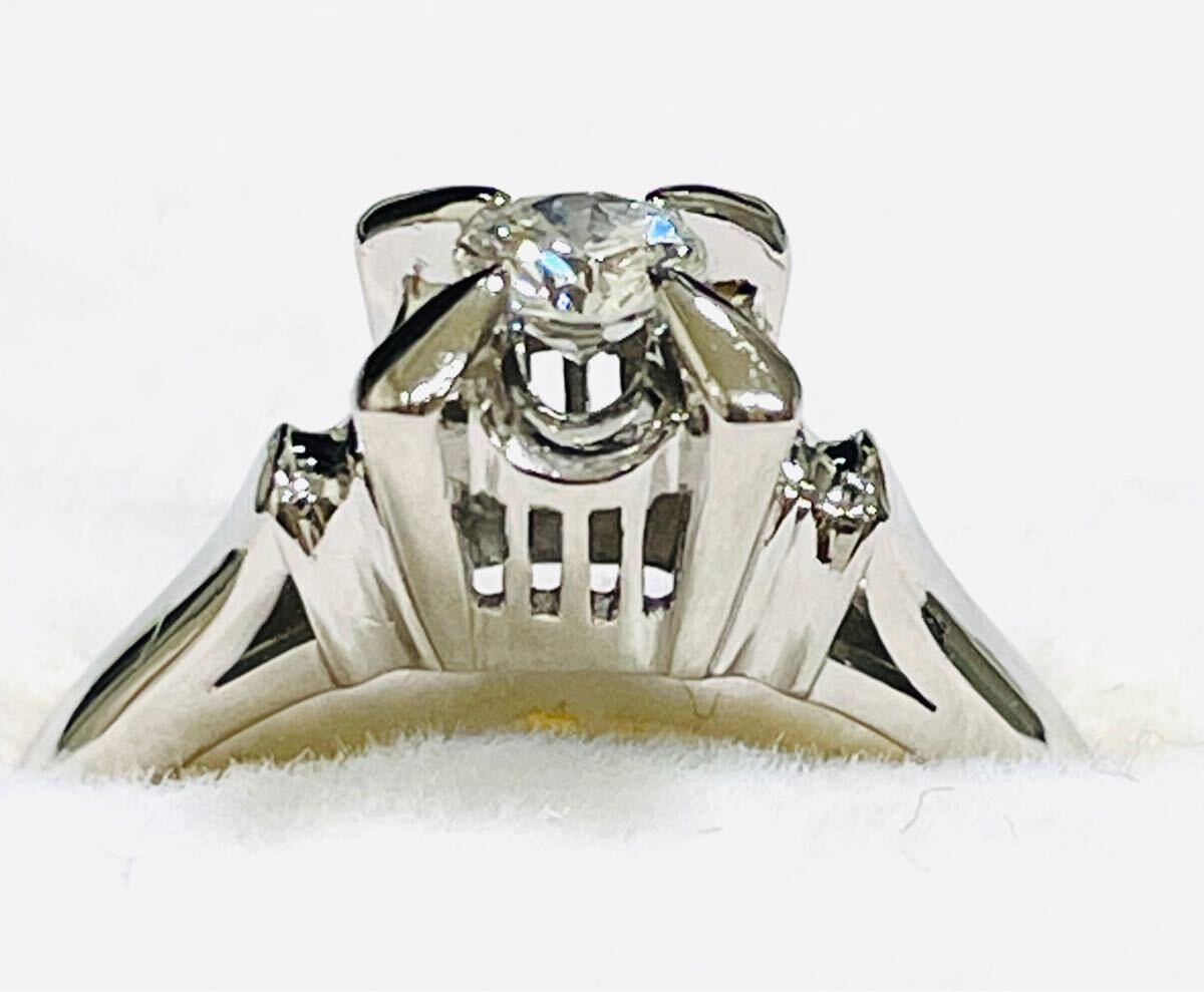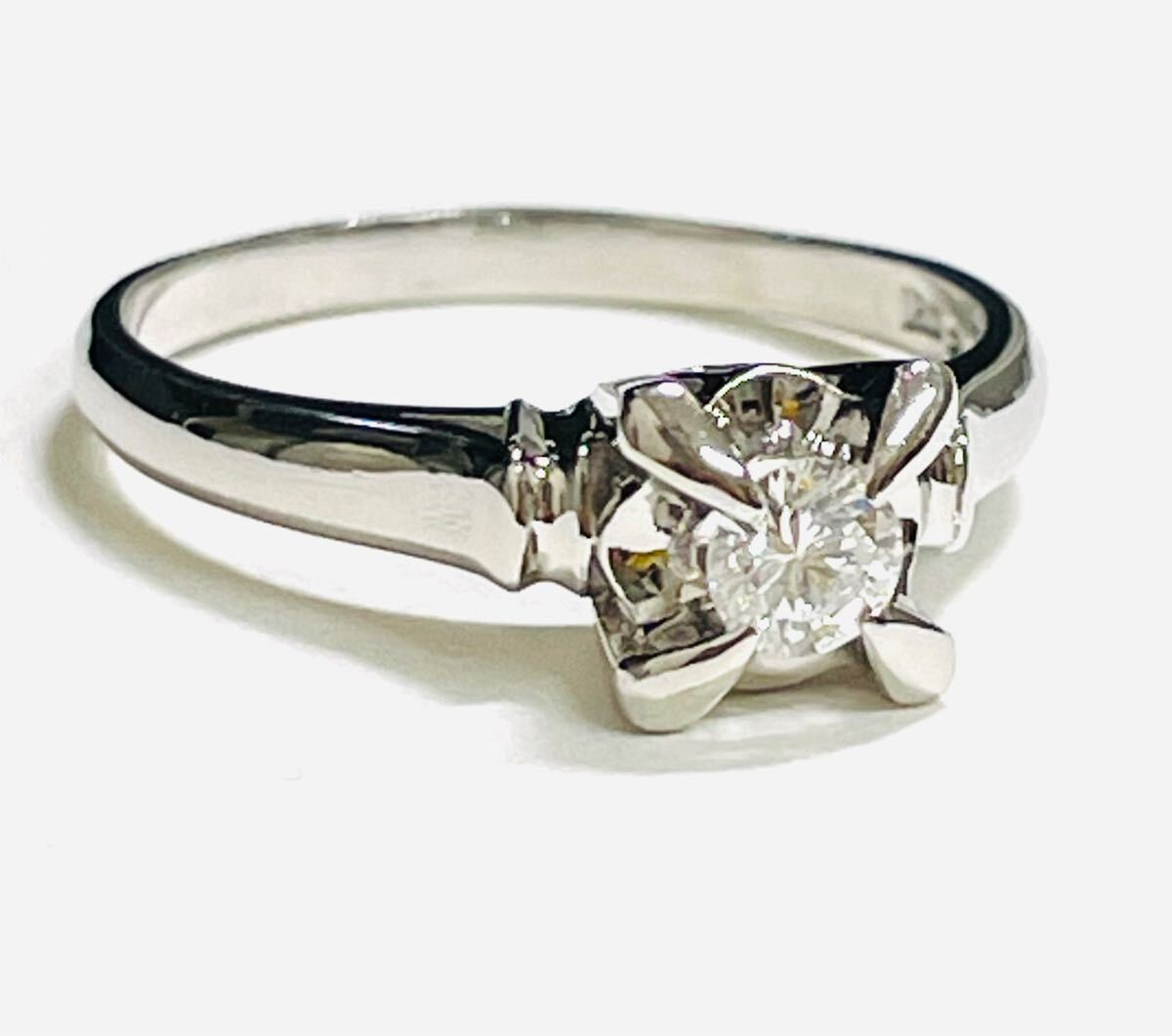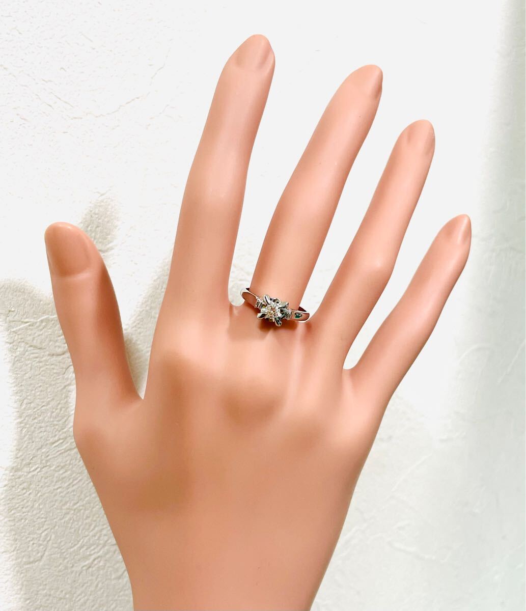 こちらは、Pt900台にダイヤ1石付き立爪リングです。