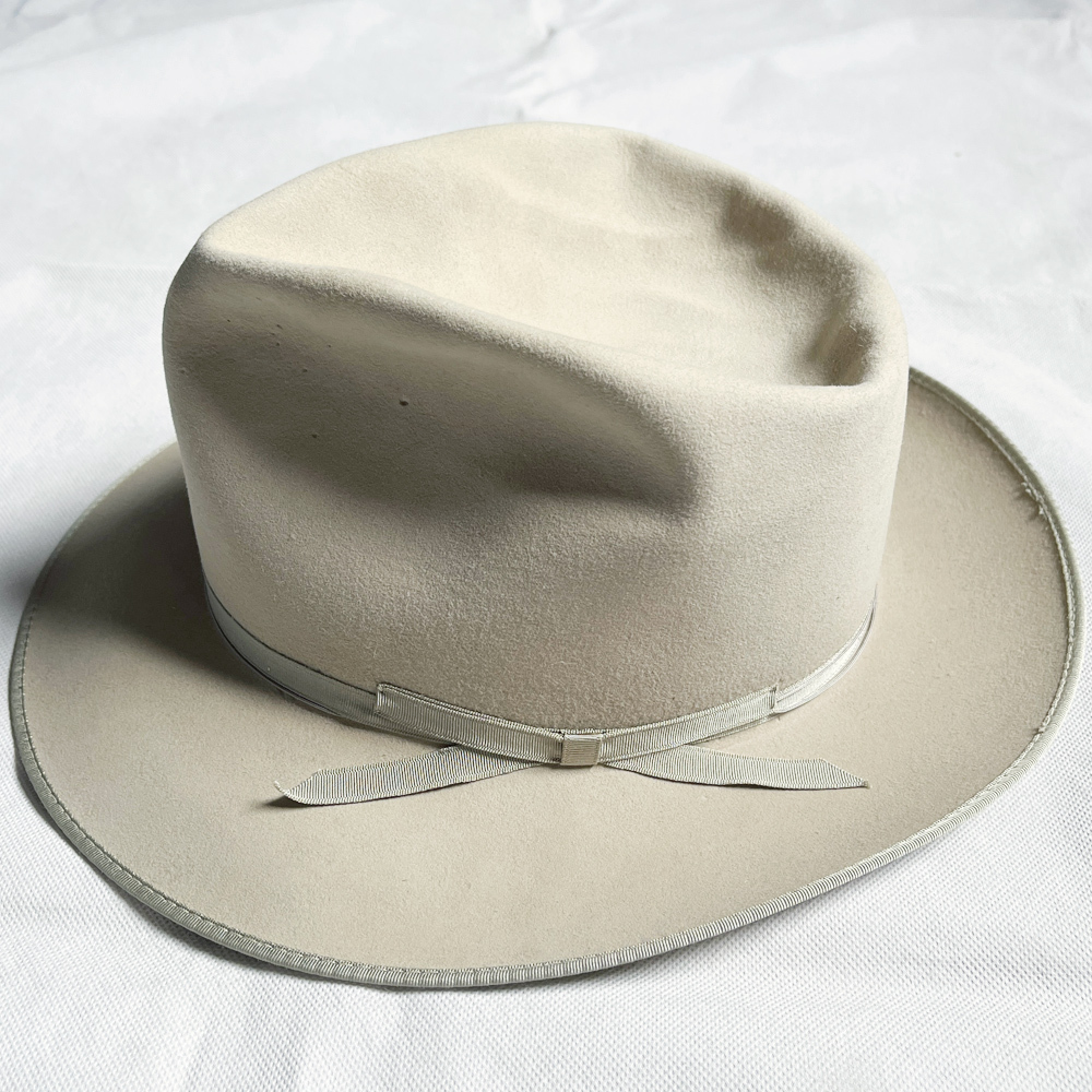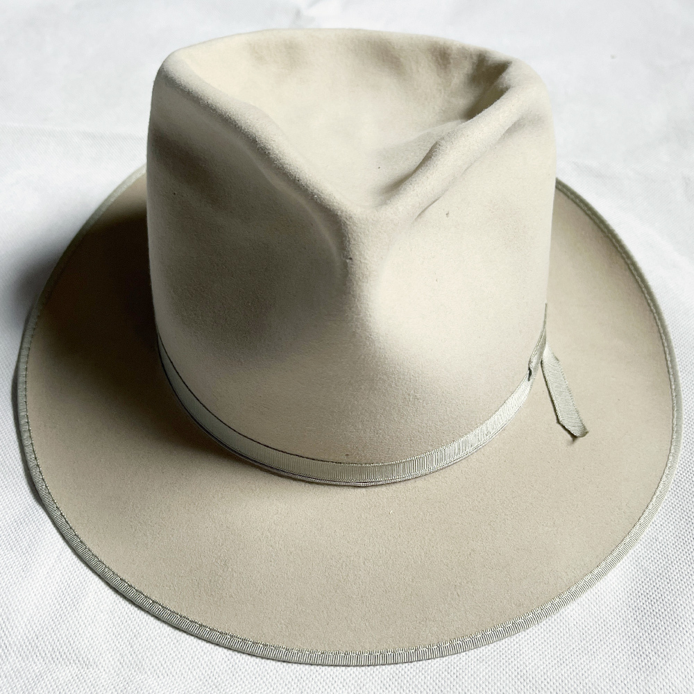 安定感抜群の人気を誇るライトベージュカラーよりも、更に球数が少ないシルバーベリーカラーで、大変合わせやすく、ヴィンテージステットソンの中でも代表的な逸品。