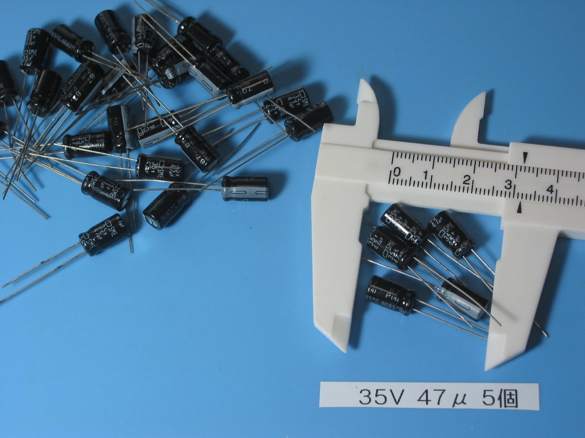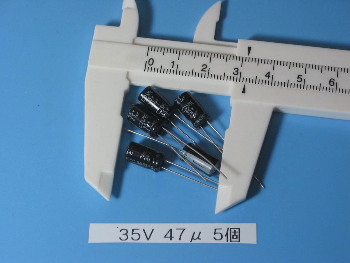 日本ケミコンのアルミ電解コンデンサー 35V 47μF 1組(5個) 長期保管品 同梱可